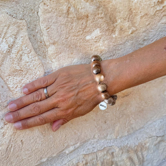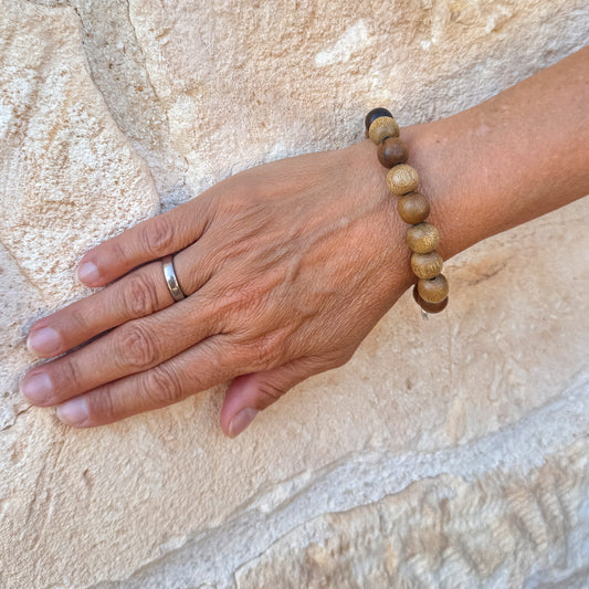 Holzarmband 6mm, Bronze mit Eichhörnchen & Wanderstiefel