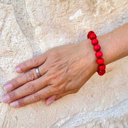 Kugelkette Metallic Rot mit Marienkäfer-Anhänger aus Holz