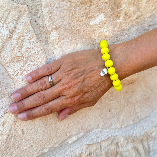 Kugelkette Metallic Gelb mit Bienenänger aus Holz