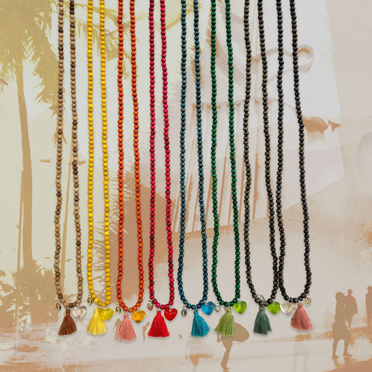 Holzkette Mix aus 6mm Perlen mit Charms und Muschel