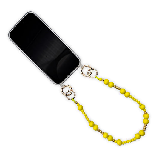 Kurze Handykette aus Holzperlen in Neongelb/Gold
