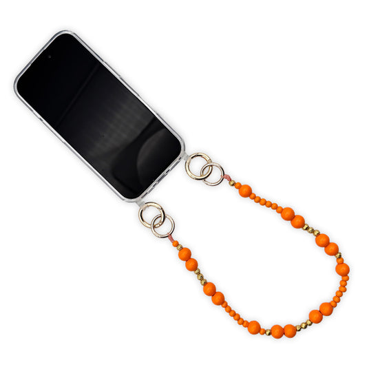 Kurze Handykette aus Holzperlen in Orange/Gold