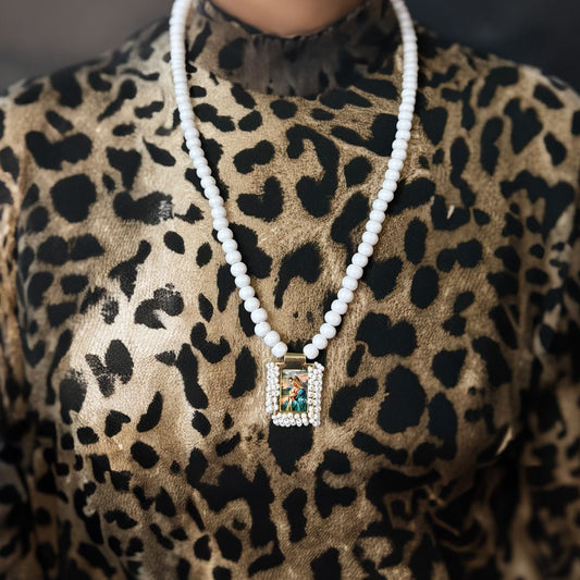 Scapulier Holzkette Weiß mit Madonnamotiv