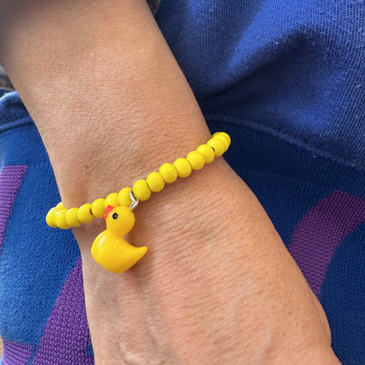 Yellow wooden bracelet with duck