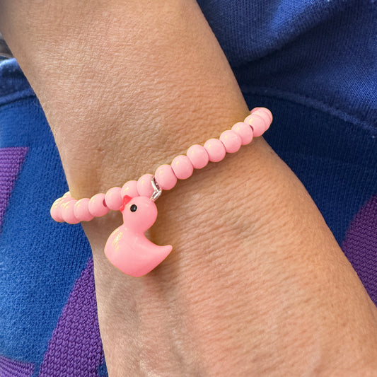 Pink wooden bracelet with duck