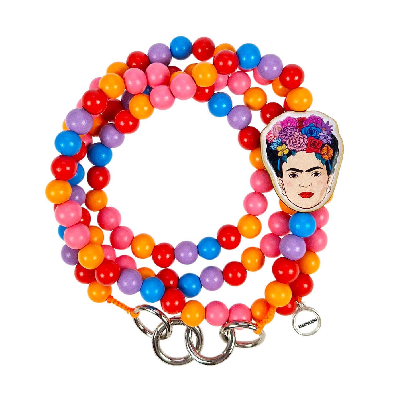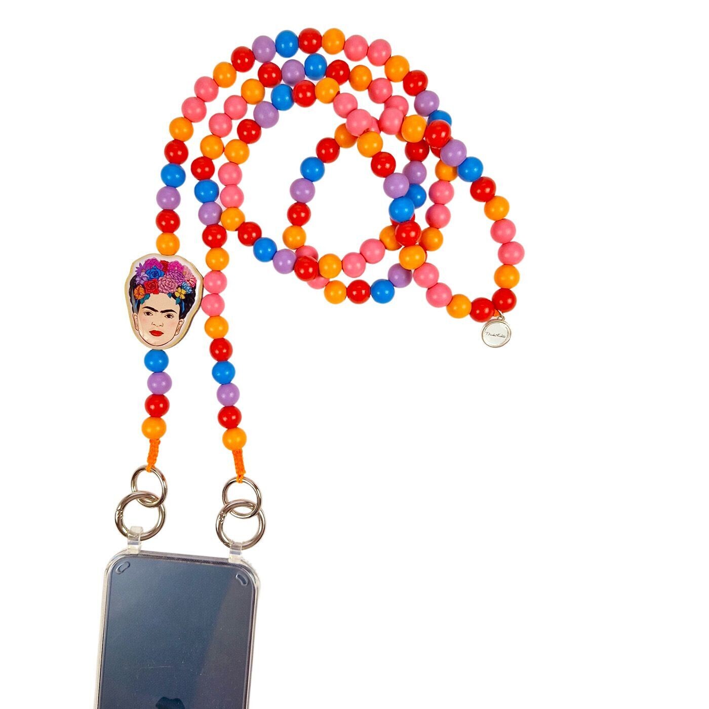 The Frida Kahlo cell phone chain made of colorful wooden beads in the colors orange, coral, denim blue, lilac and pink is a unique and artistic accessory that will stylishly embellish your cell phone while expressing your appreciation for the famous Mexican artist Frida Kahlo. Handcrafted with attention to detail, this cell phone chain is an eye-catcher that will make you stand out from the crowd.