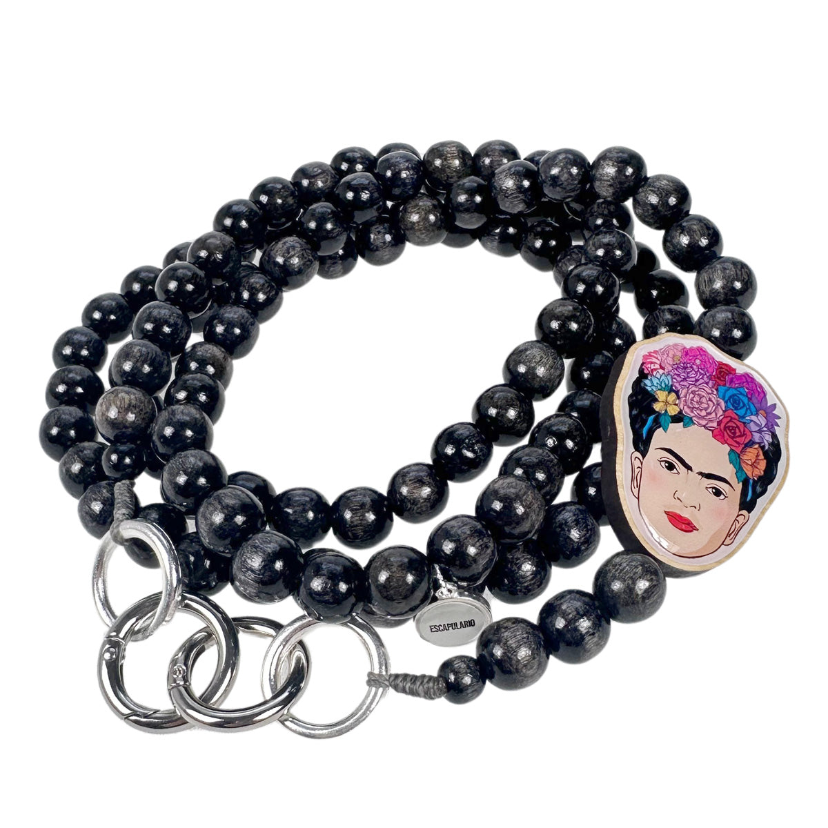 - Frida Kahlo Pin: The centerpiece of this cell phone chain is the detailed Frida Kahlo pin, which was crafted with great care. The lasered wooden pin shows a portrait of the legendary artist with her distinctive eyebrows, flower crowns and strong expression. The pin is securely attached to the cell phone chain and gives it an artistic and cultural touch.