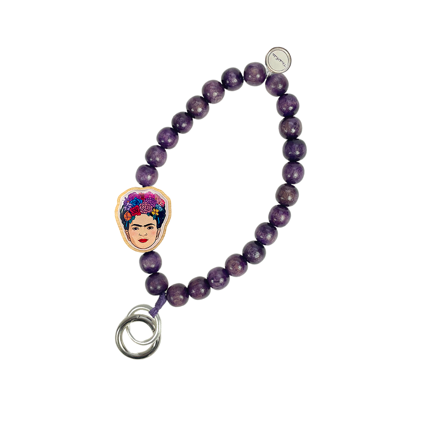 Discover our unique key chain made from high-quality 12mm wooden beads and featuring a beautiful lasered Frida Kahlo wooden pin.