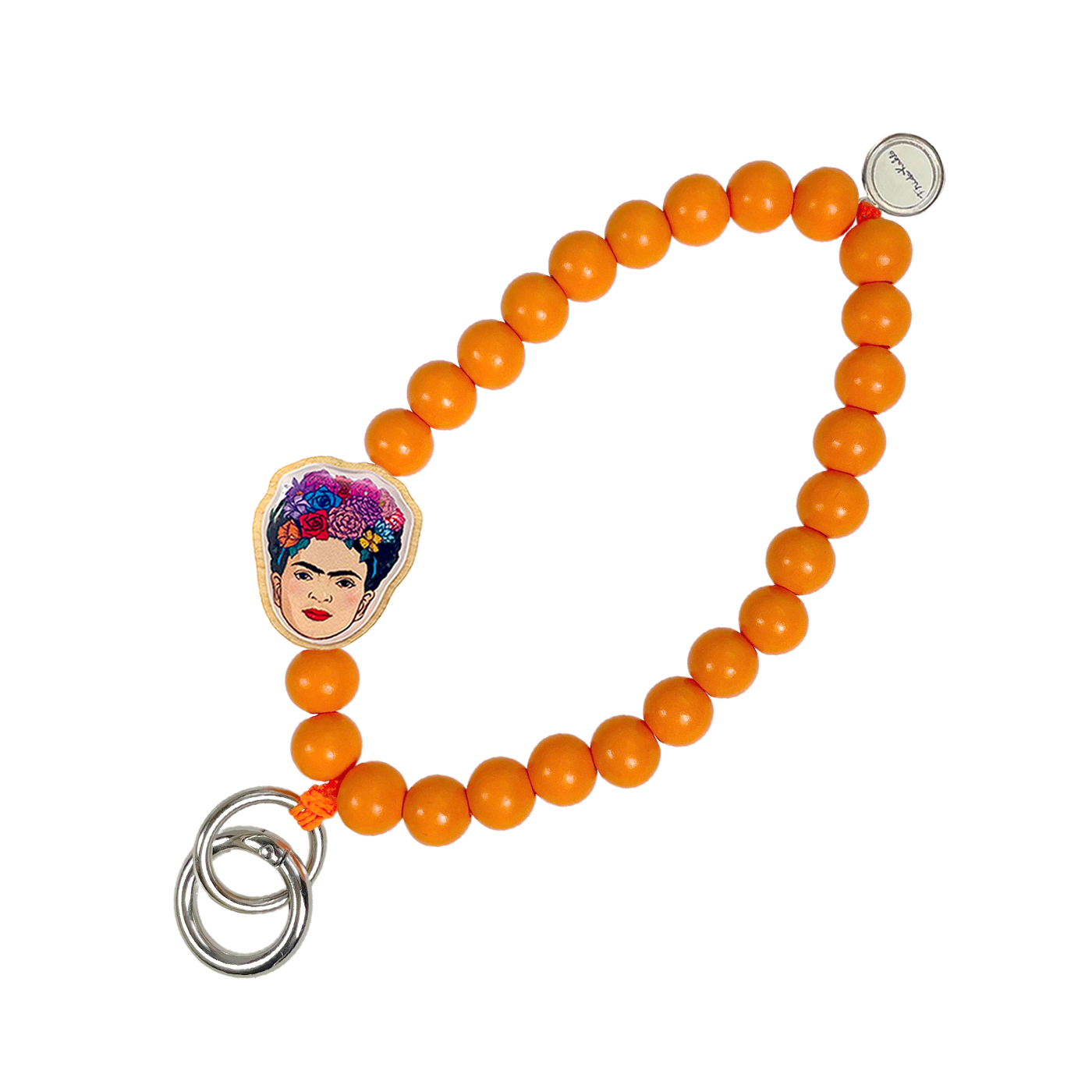 Discover our unique key chain made from high-quality 12mm wooden beads and featuring a beautiful lasered Frida Kahlo wooden pin.