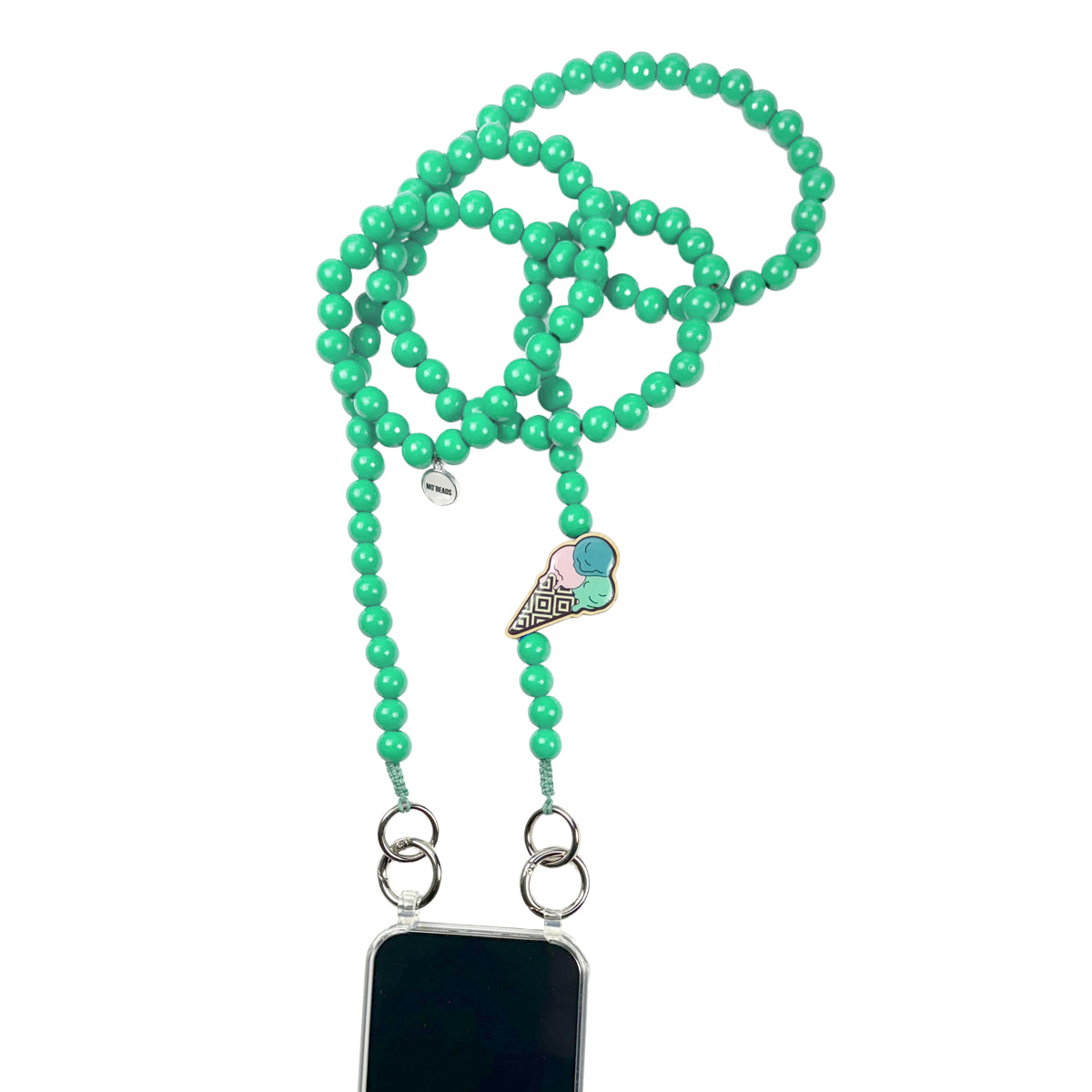 A playful ice cream wooden pin adds a cheerful accent and underlines the summery theme. Two round snap rings ensure easy attachment to your cell phone case. This cell phone chain combines functionality with a fashionable design and is a must-have for anyone who wants to be stylish and practical on the go, even in summer.