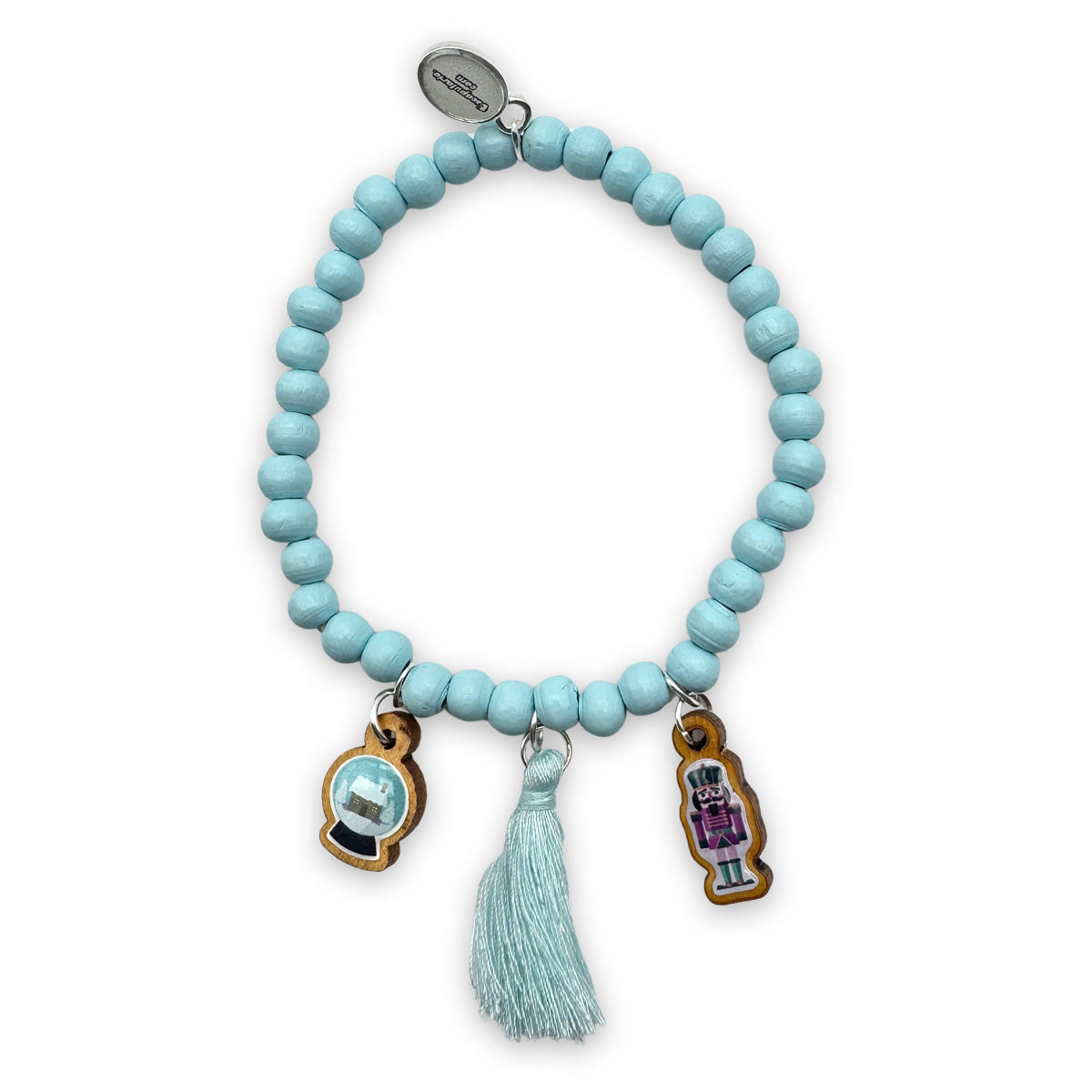 Wooden bracelet in 6mm beads in lilac with tassel and 2 wooden pins (caviar & champagne)