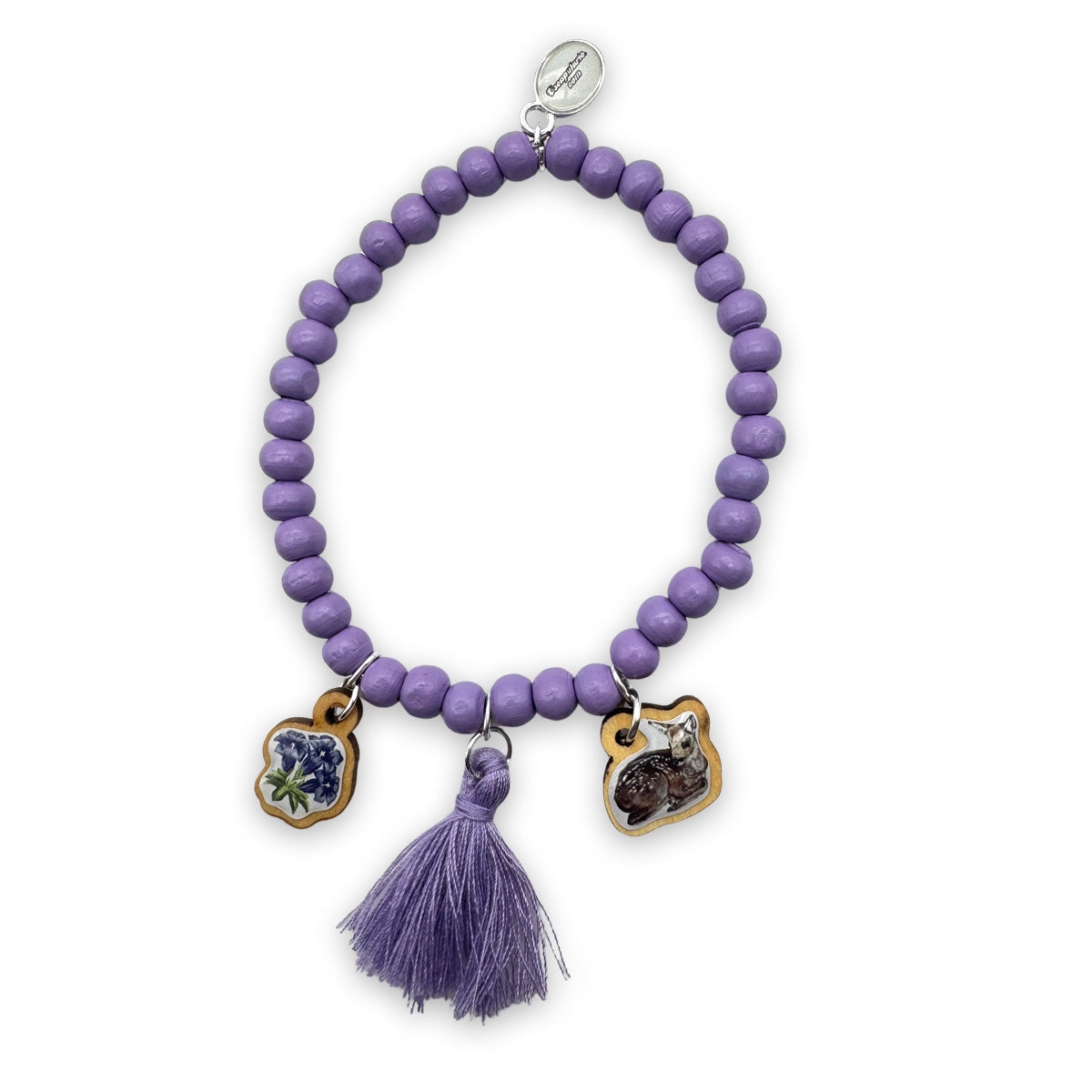 Wooden bracelet in 6mm beads in lilac with tassel and 2 wooden pins (caviar & champagne)