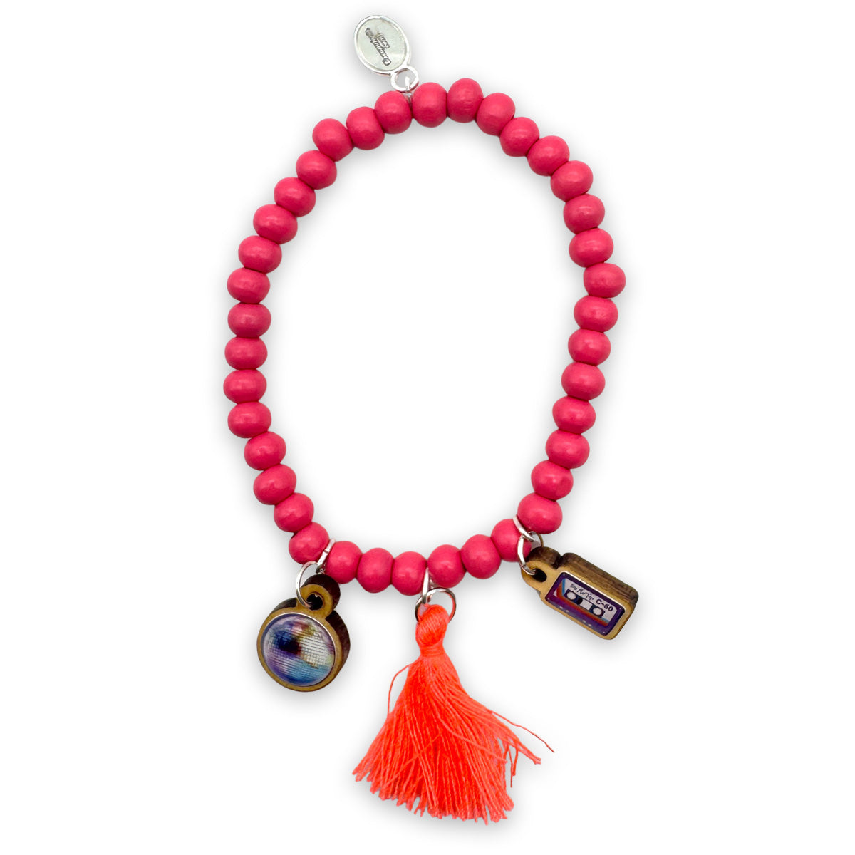 Wooden bracelet in 6mm beads in lilac with tassel and 2 wooden pins (caviar & champagne)