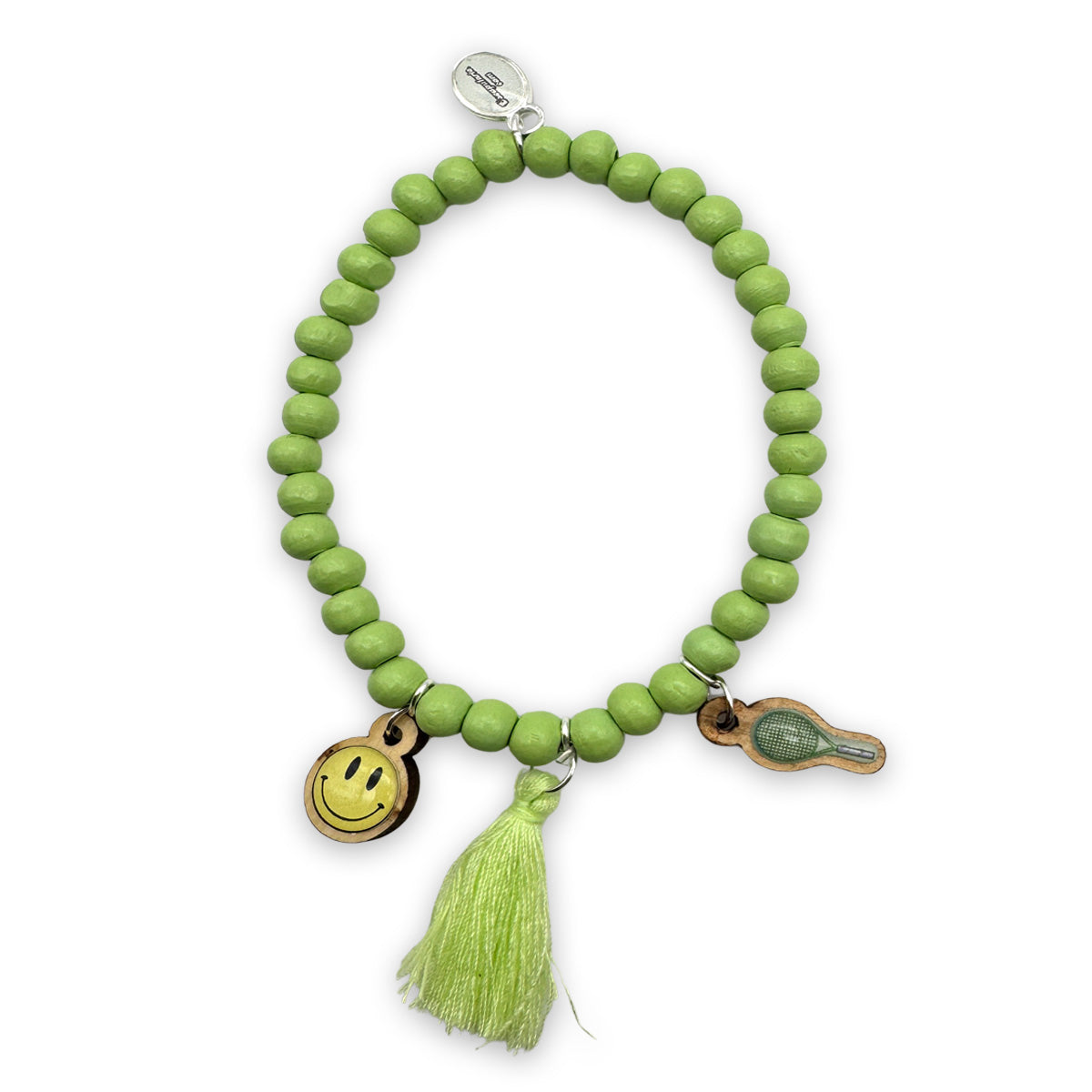 Wooden bracelet in 6mm beads in lilac with tassel and 2 wooden pins (caviar & champagne)