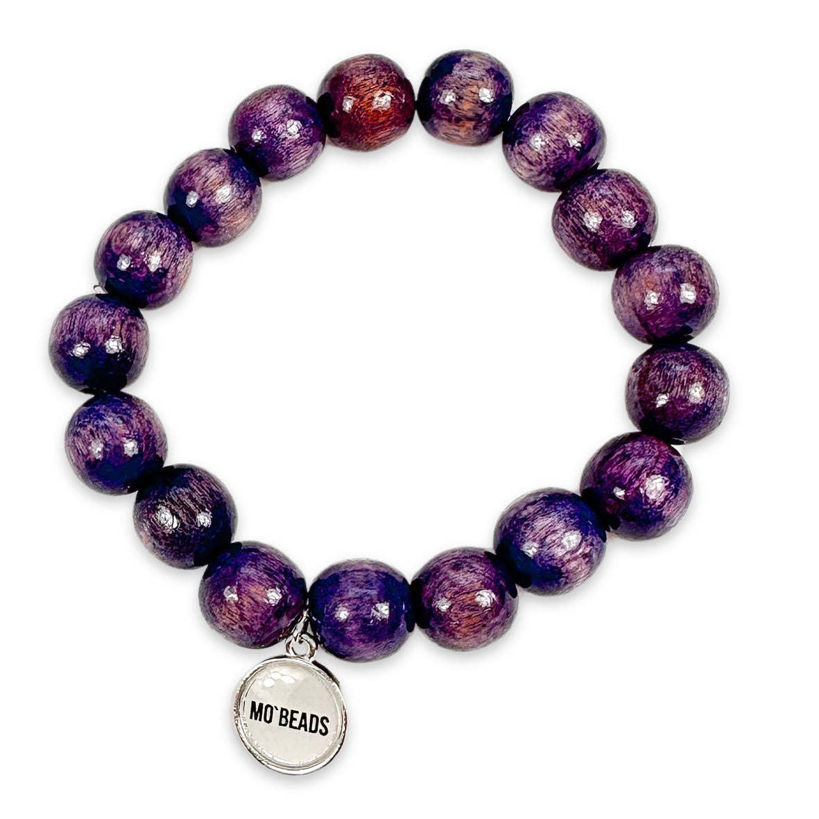 The wooden bracelet from Mo`Beads matches the mobile phone chain. The bracelet consists of 17 wooden beads with a diameter of 12mm.