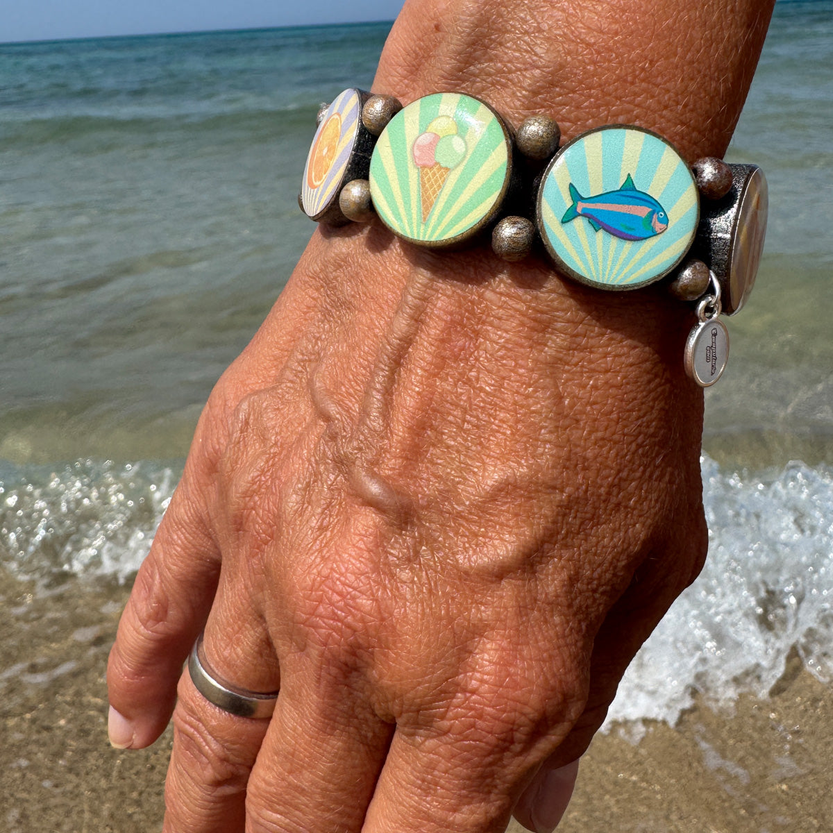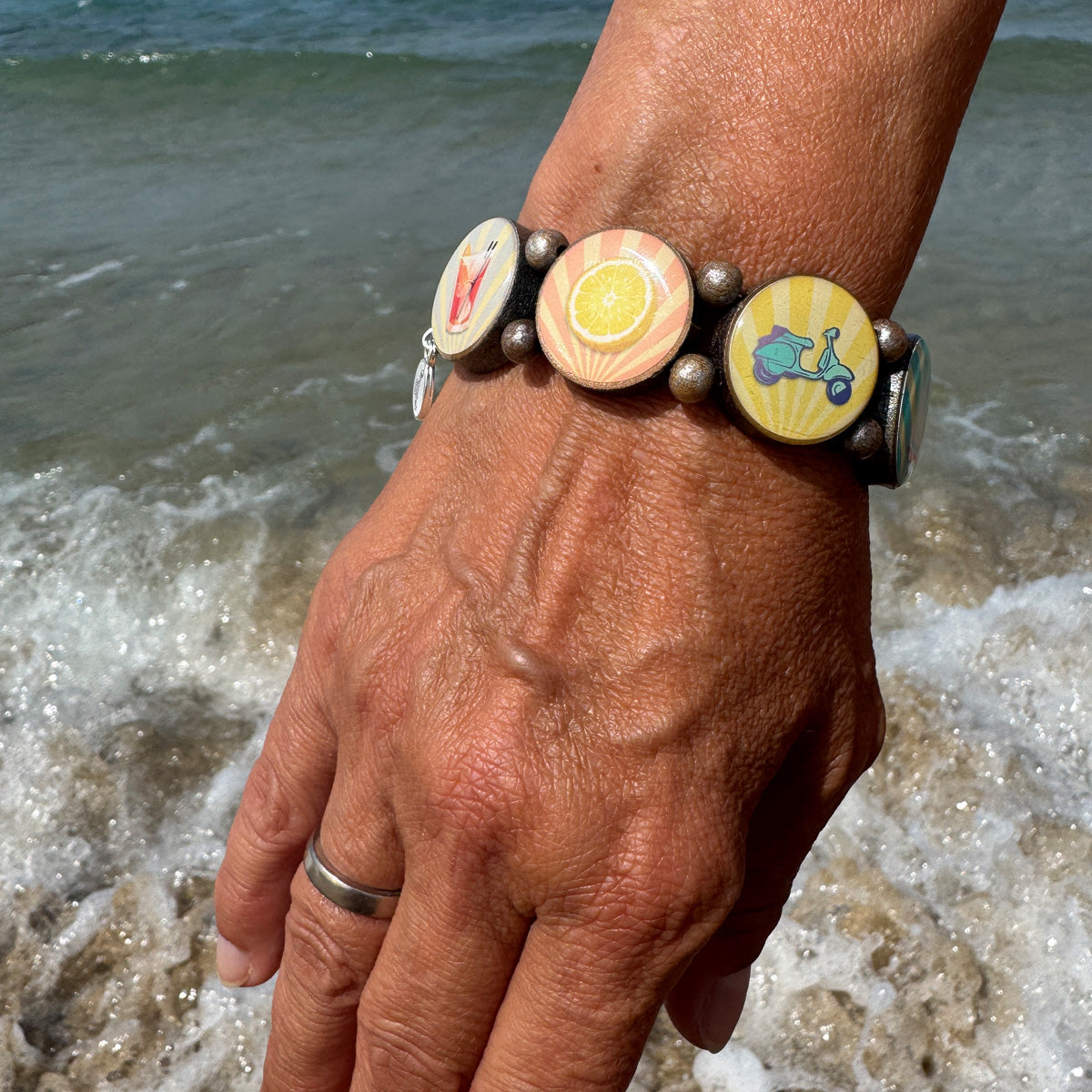 Wooden Bracelet Round Stripe with 8 Beach Motifs
