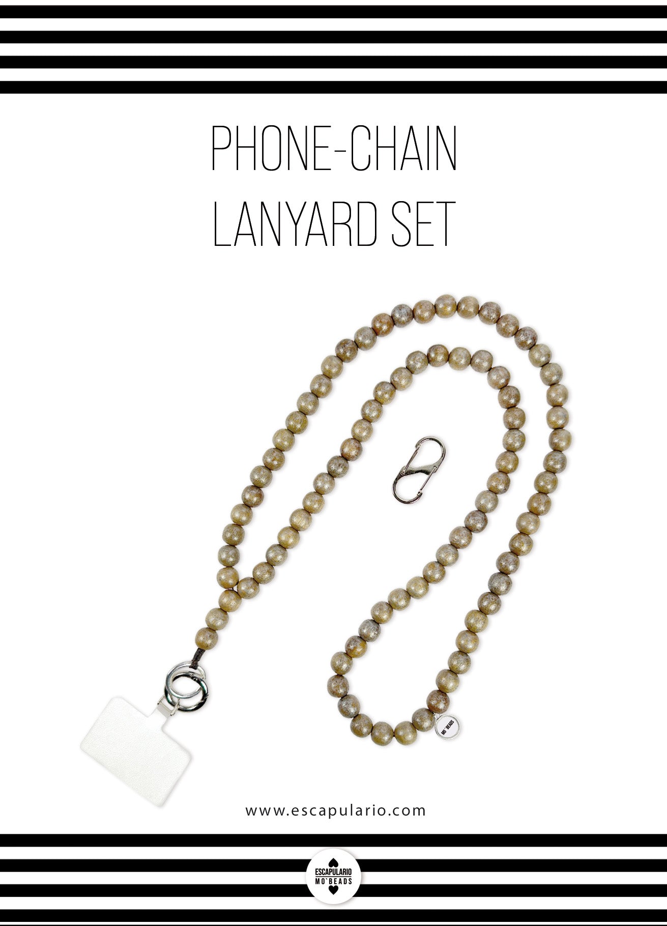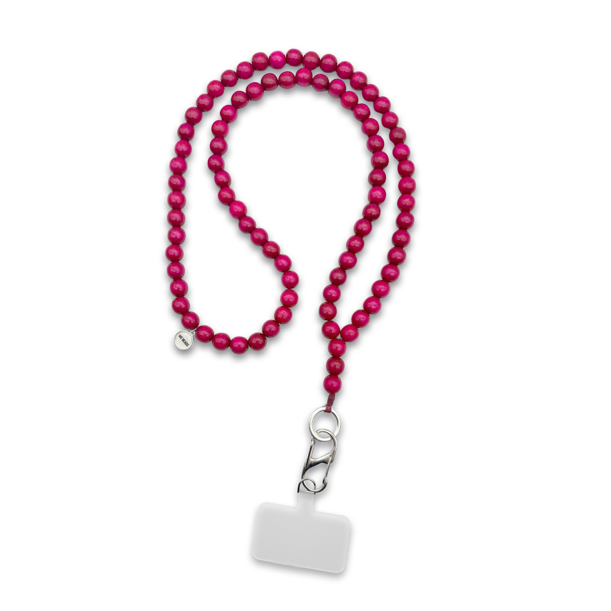 Lanyard with double snap hook and universal plate for attaching a cell phone. 12mm wooden beads in pink