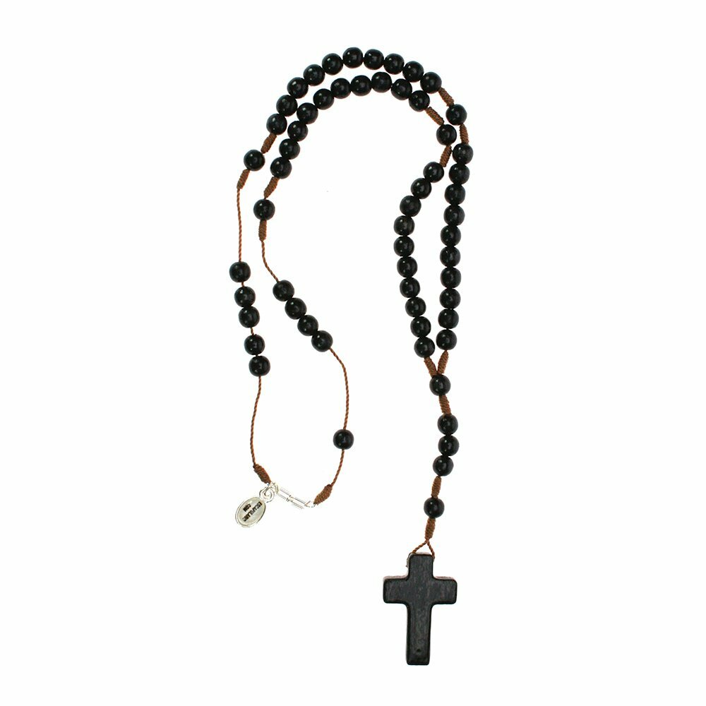 A classic from our collection. Short rosary chain made of black wooden beads.