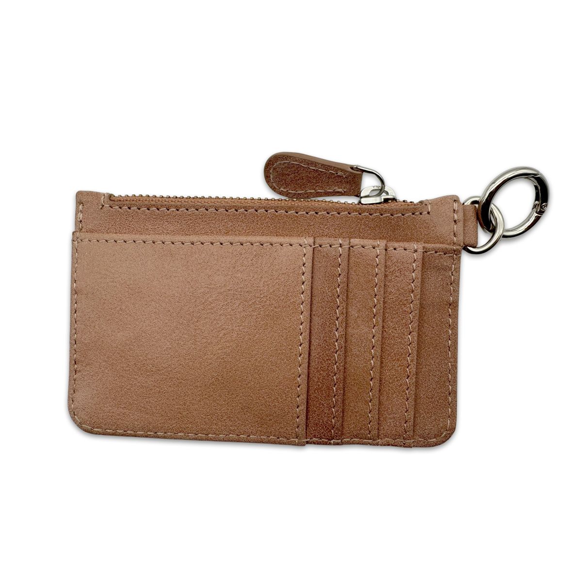 This practical wallet made of high-quality leather in timeless beige is the perfect companion for on the go. With a sturdy carabiner ring, it can be easily attached to your cell phone chain or bag and is always at hand.