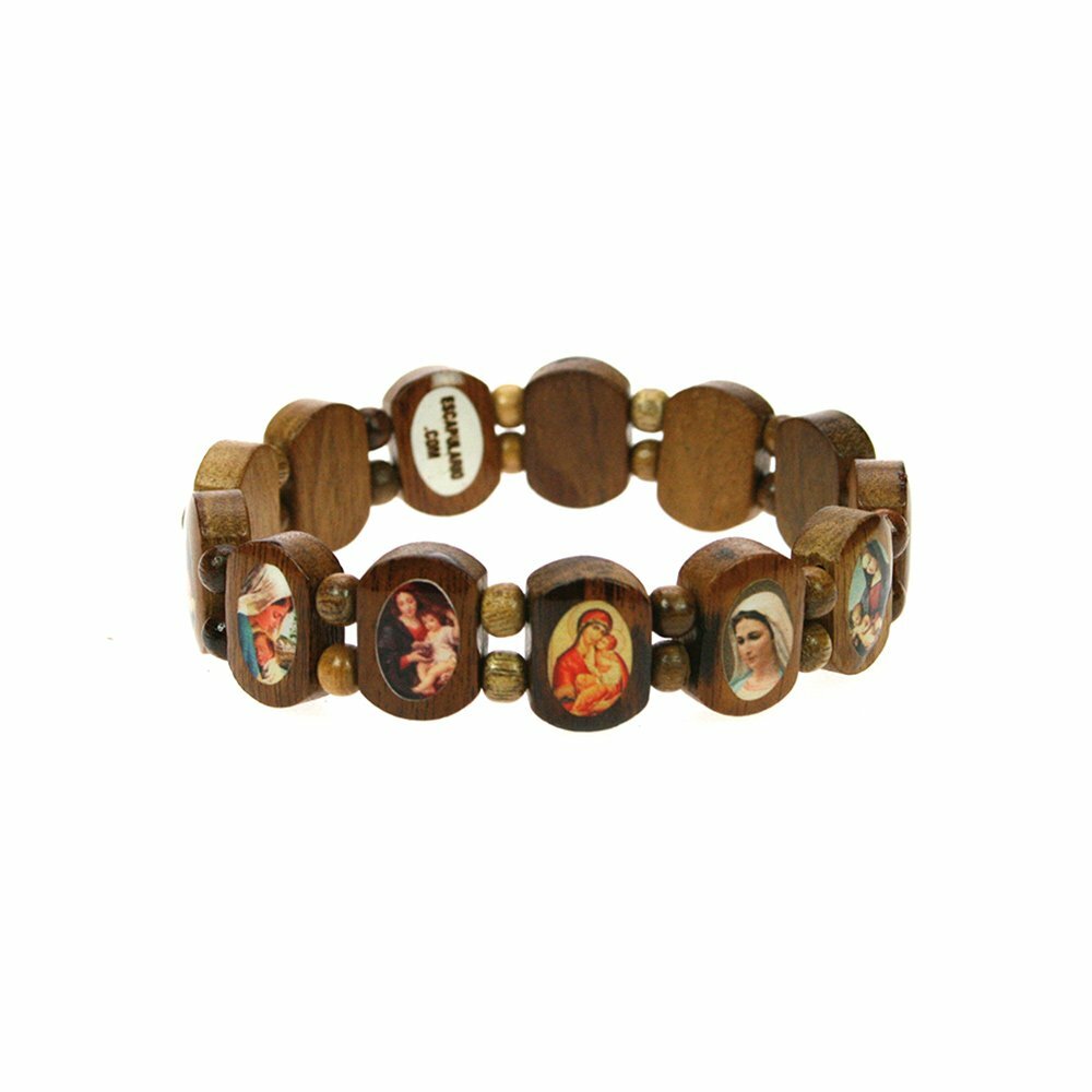 "Narrow Escapulario Patron Saint Wooden Bracelet Brown"