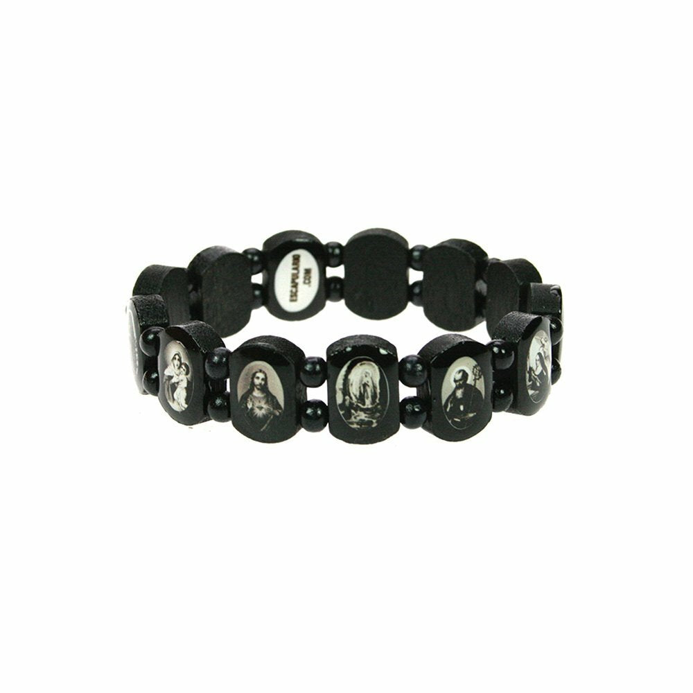 The classic, narrow elastic bracelet par excellence - simple black beads and amulets adorned with images of various patron saints.
