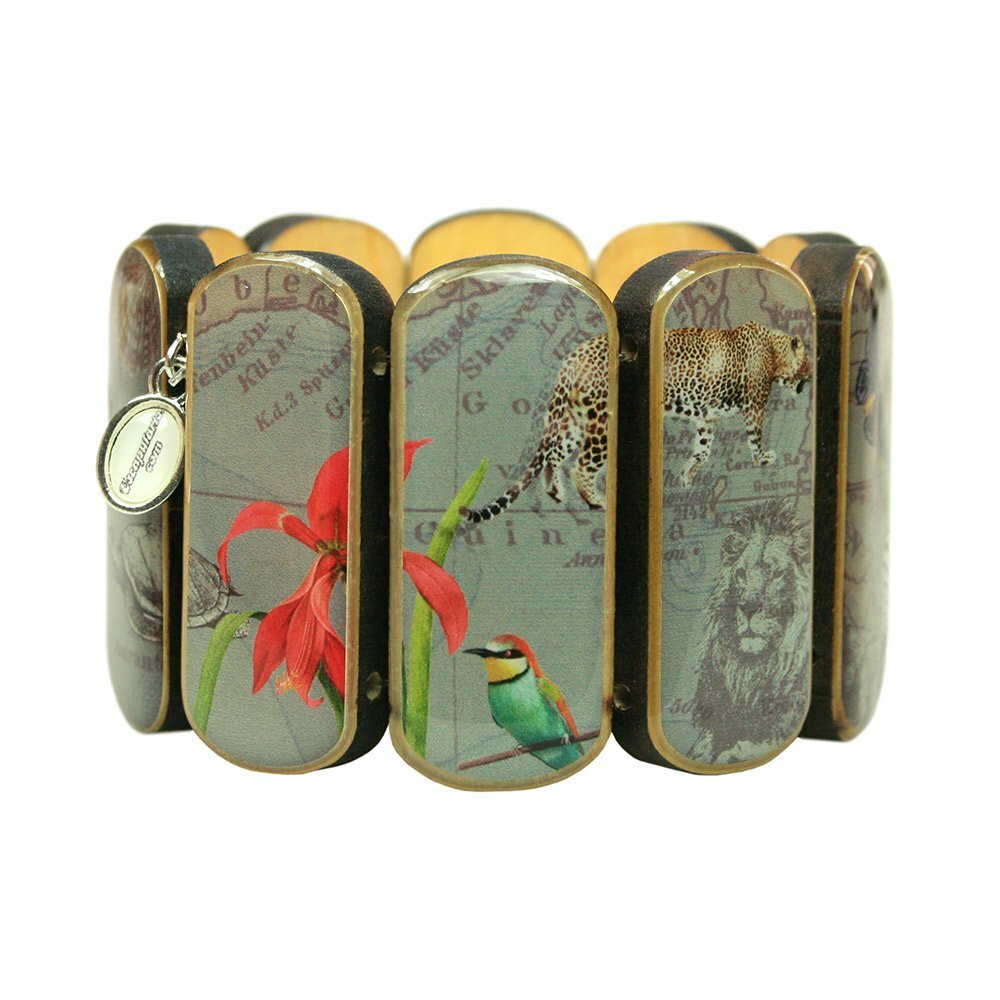 Pretty large wooden bracelet from Escapulario with a light brown African motif. The ideal bracelet for all travel enthusiasts
