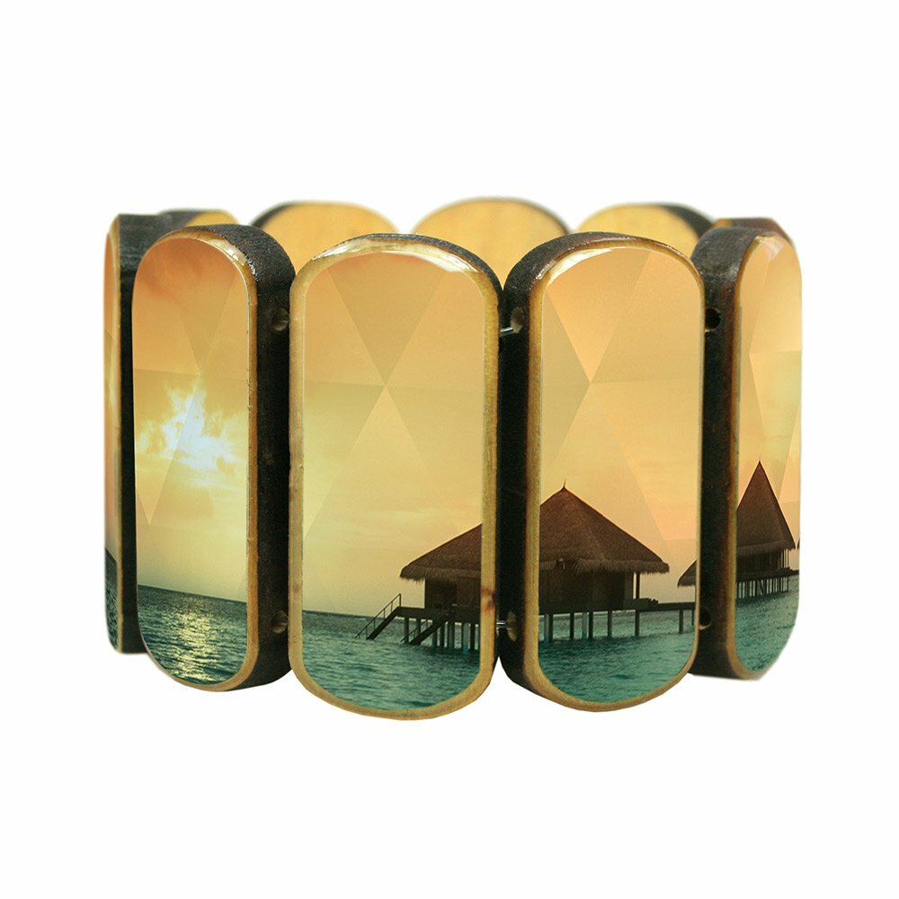 Large wooden bracelet from Escapulario with Bora Bora motif. The bracelet is ideal for all South Sea fans and travel enthusiasts