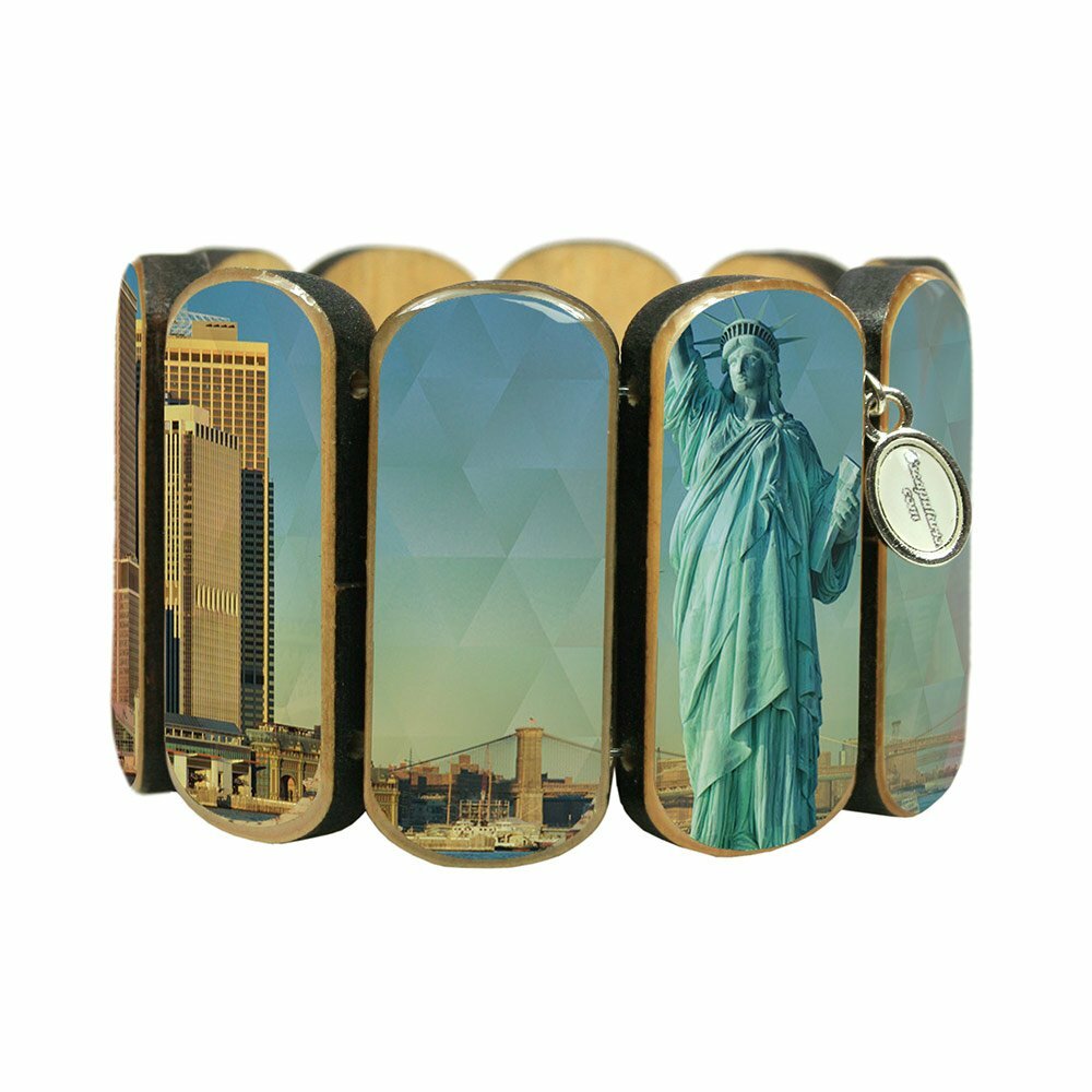 Large Escapulario wooden bracelet with New York skyline. The ideal bracelet for all travel enthusiasts