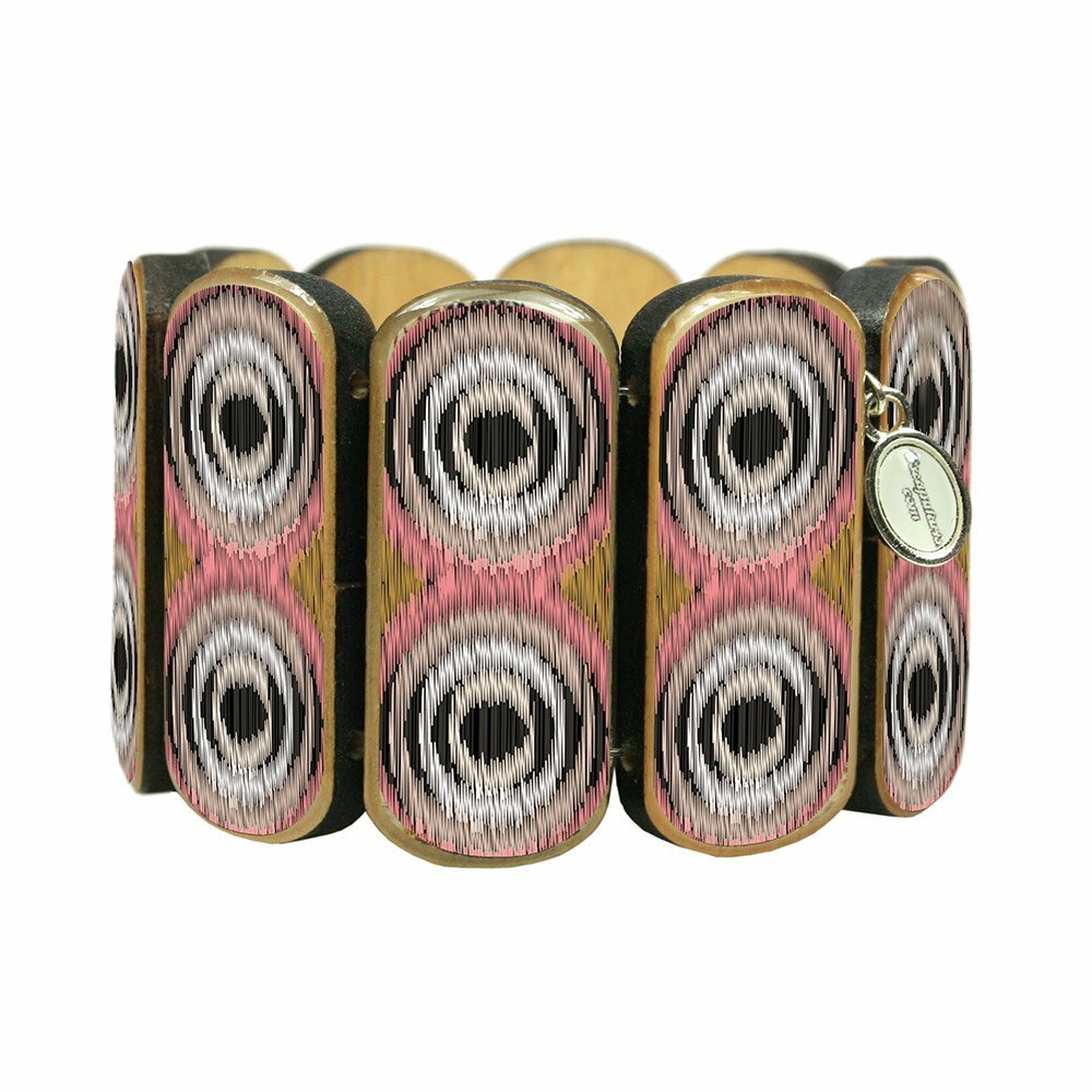 Large Escapulario wooden bracelet with pink ikat circle pattern