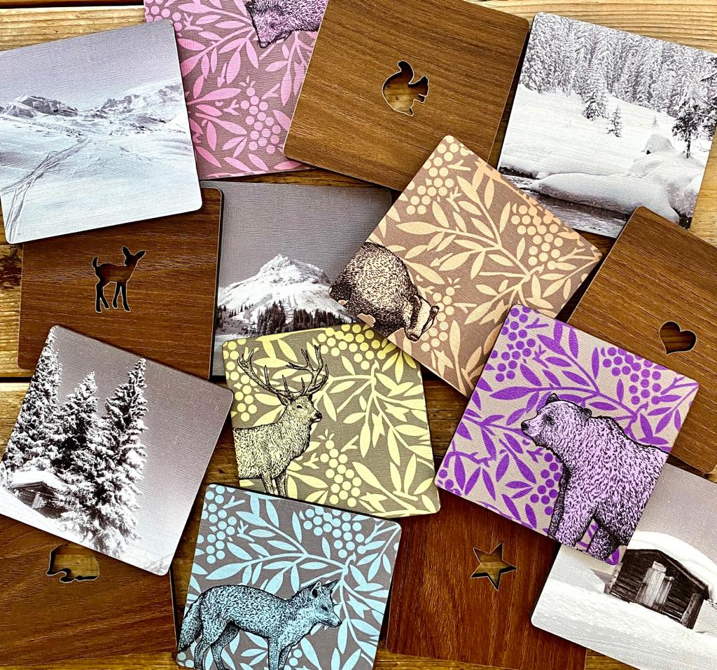 Coasters set of 5 lasered FOREST ANIMALS made of MDF wood