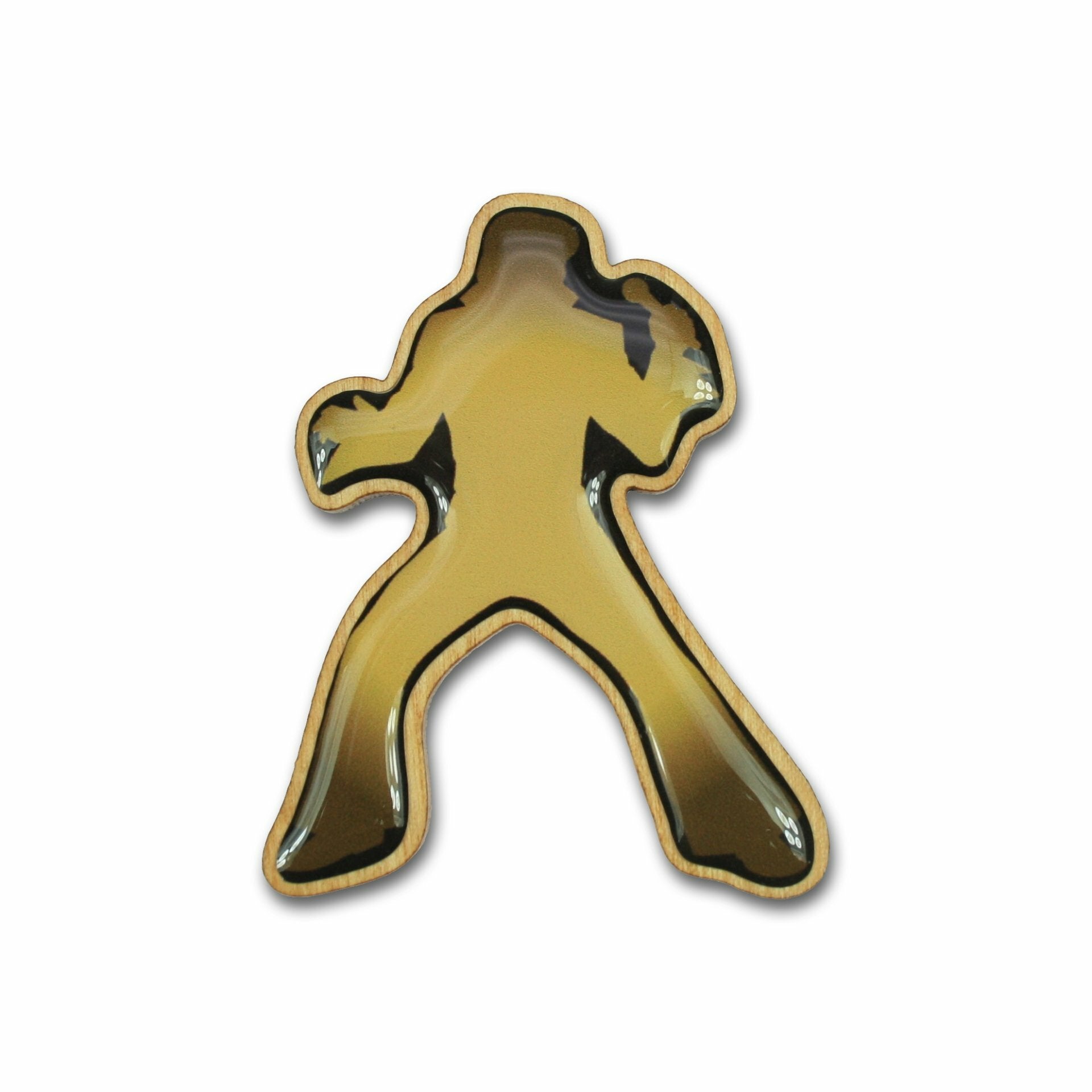 Brooch made of Marfim wood, Elvis yellow motif. The brooch has a pin on the back so that it can be easily attached to almost any piece of clothing.