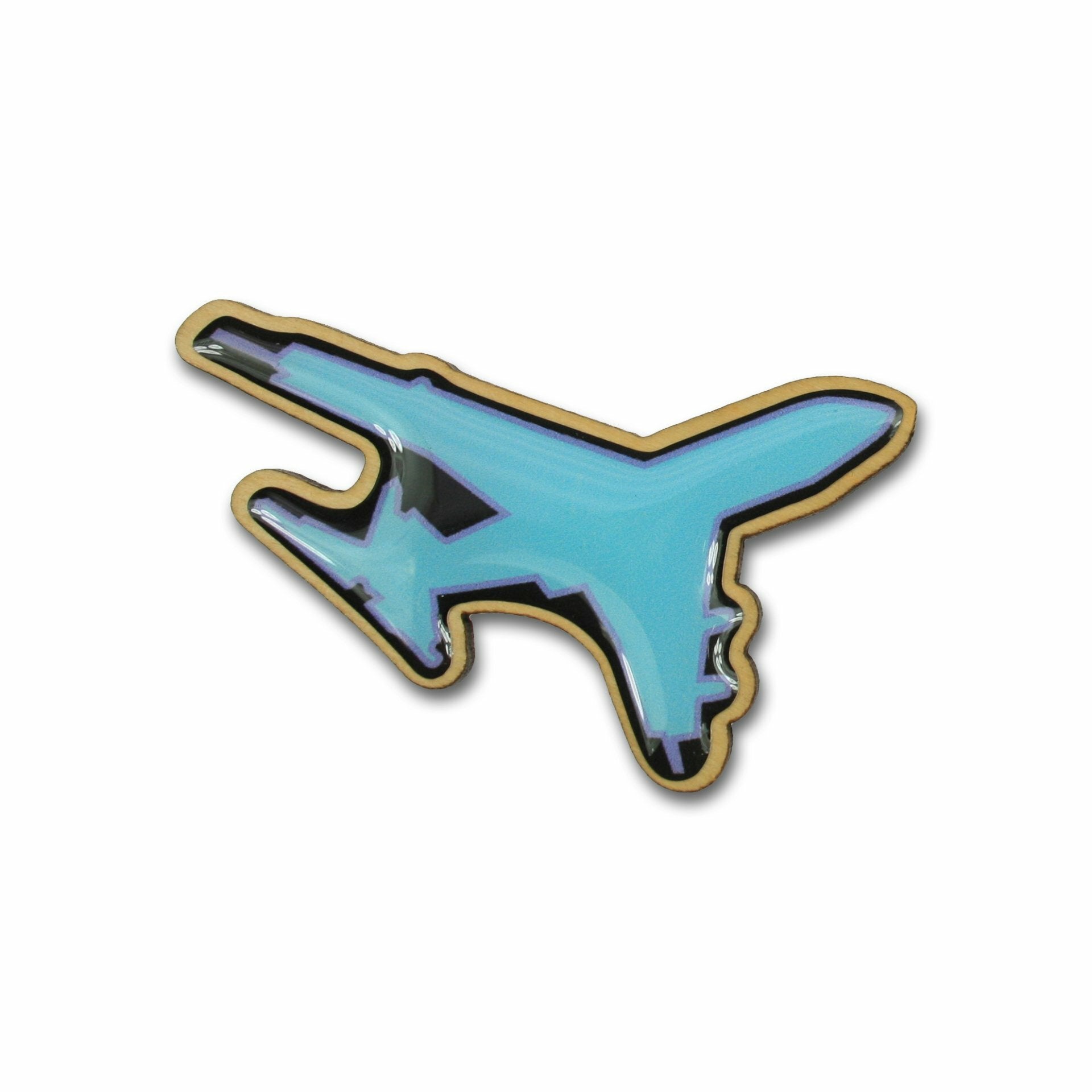 Brooch made of Marfim wood, airplane motif in light blue. The brooch has a pin on the back so that it can be easily attached to almost any piece of clothing.