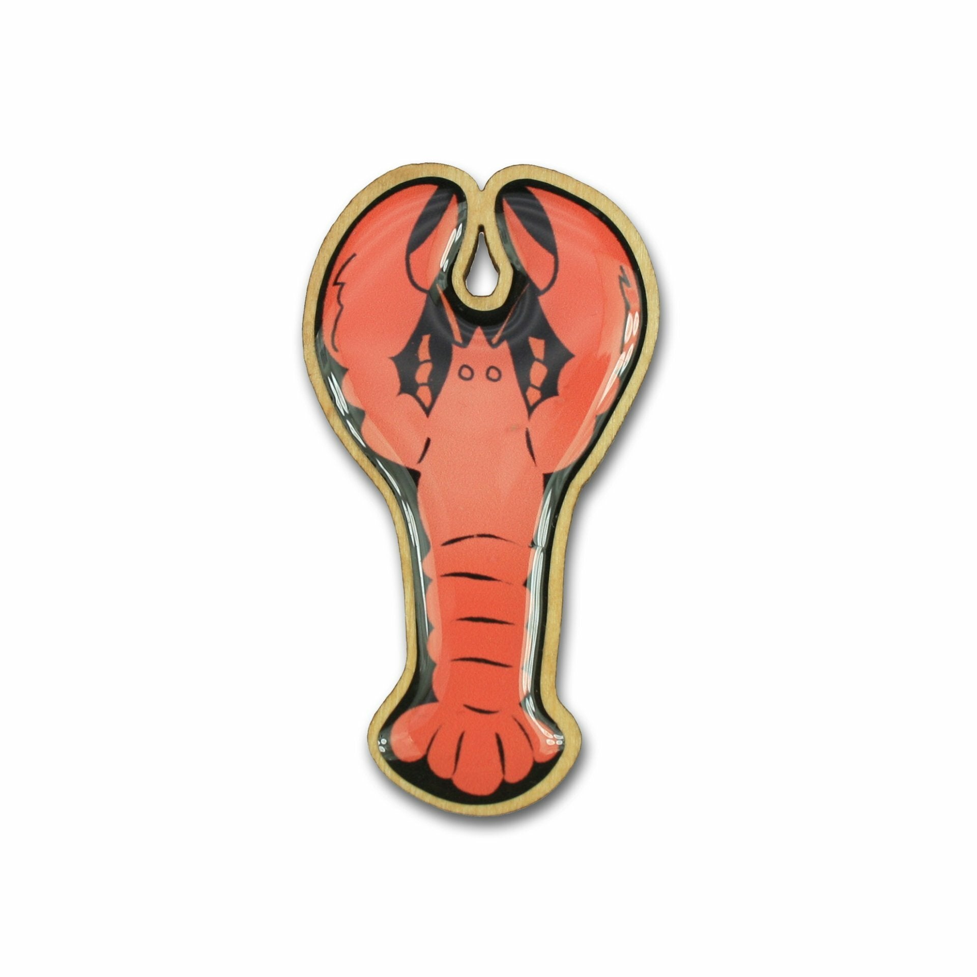 Brooch made of Marfim wood, Lobster Orange motif. The brooch has a pin on the back so that it can be easily attached to almost any piece of clothing.