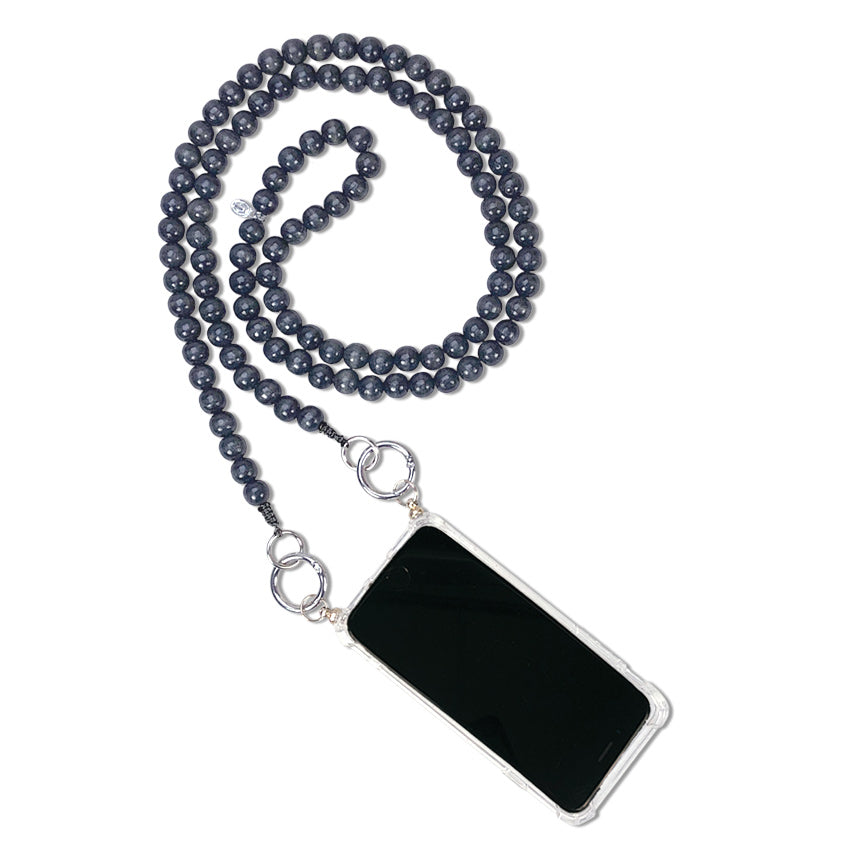 La chaîne de téléphone portable composée de 108 perles en bois colorées en gris froid.