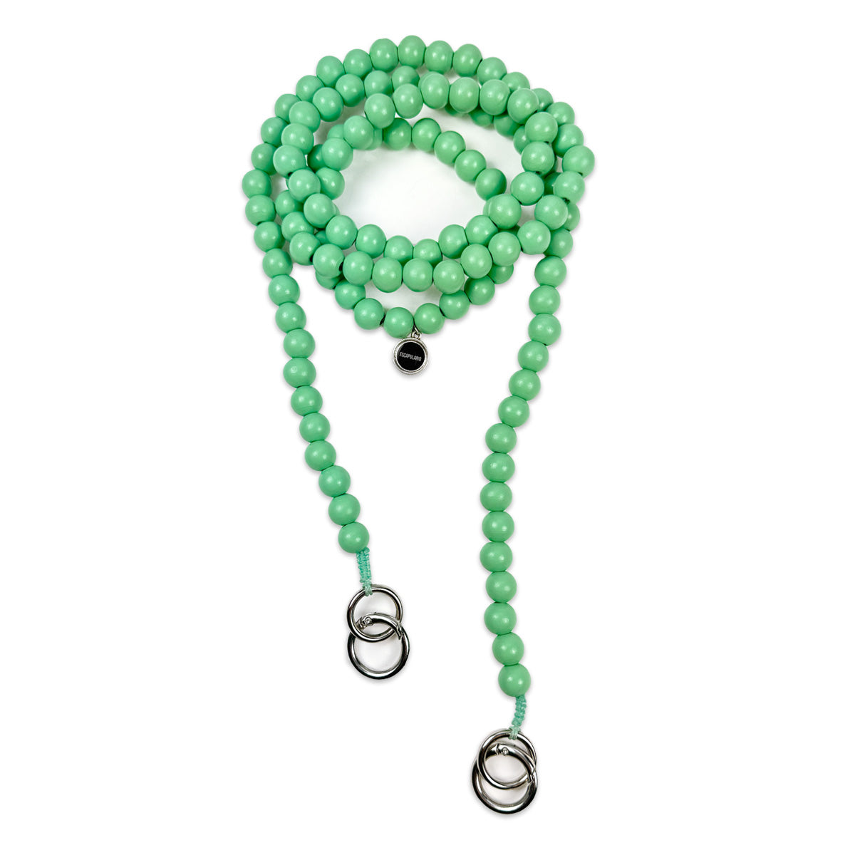 La chaîne de téléphone portable composée de 112 perles en bois colorées en menthe pastel estivale.