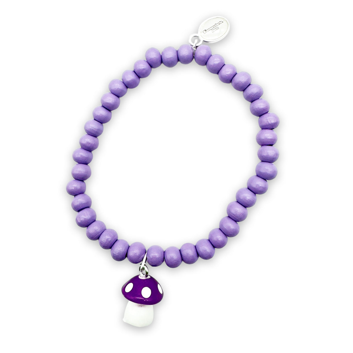 Bracelet en bois en perles de 6mm en lilas avec pompon et 2 épingles en bois (caviar & champagne)