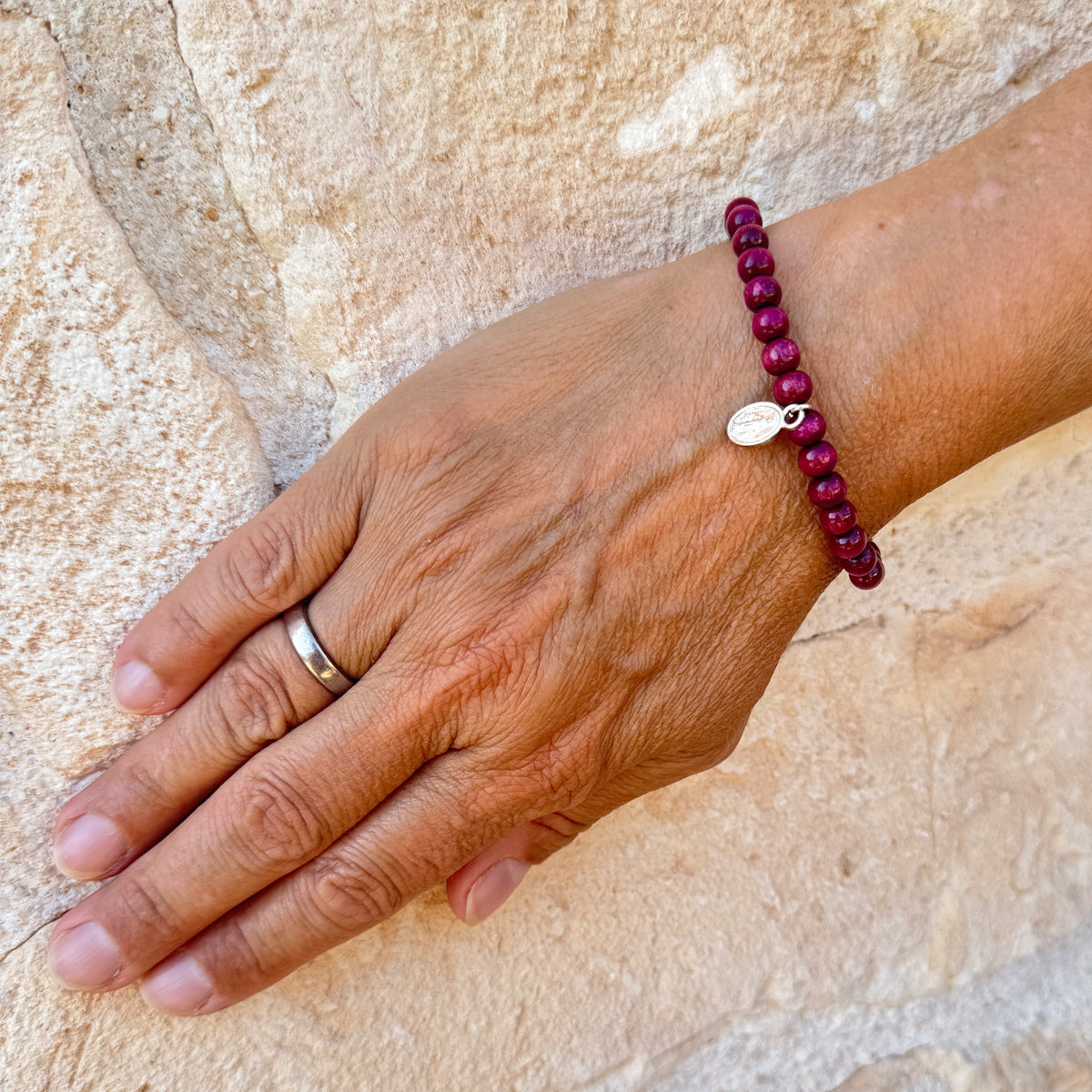 Le bracelet en perles de bois « Lilas » capture la délicatesse et l'élégance de cette couleur unique, et les perles de bois de 6 mm ajoutent une sophistication subtile à la pièce. La base en silicone élastique permet un ajustement confortable aux poignets d'un diamètre de 5,5 cm sans avoir recours à des attaches ou des clips.