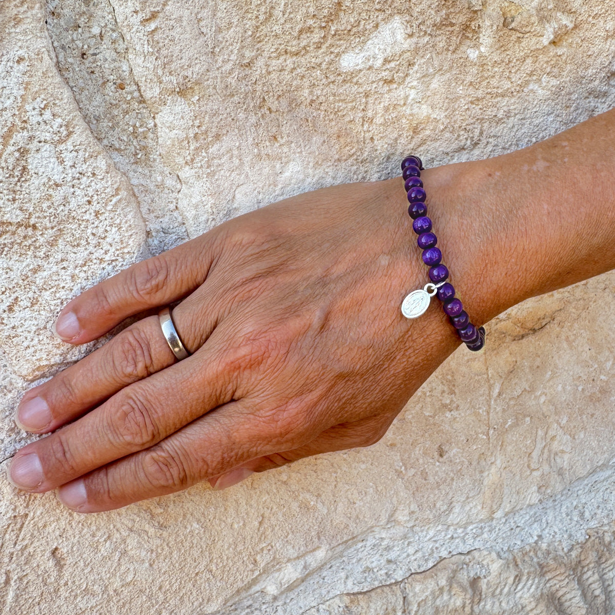 Le bracelet en perles de bois « Lilas » capture la délicatesse et l'élégance de cette couleur unique, et les perles de bois de 6 mm ajoutent une sophistication subtile à la pièce. La base en silicone élastique permet un ajustement confortable aux poignets d'un diamètre de 5,5 cm sans avoir recours à des attaches ou des clips.