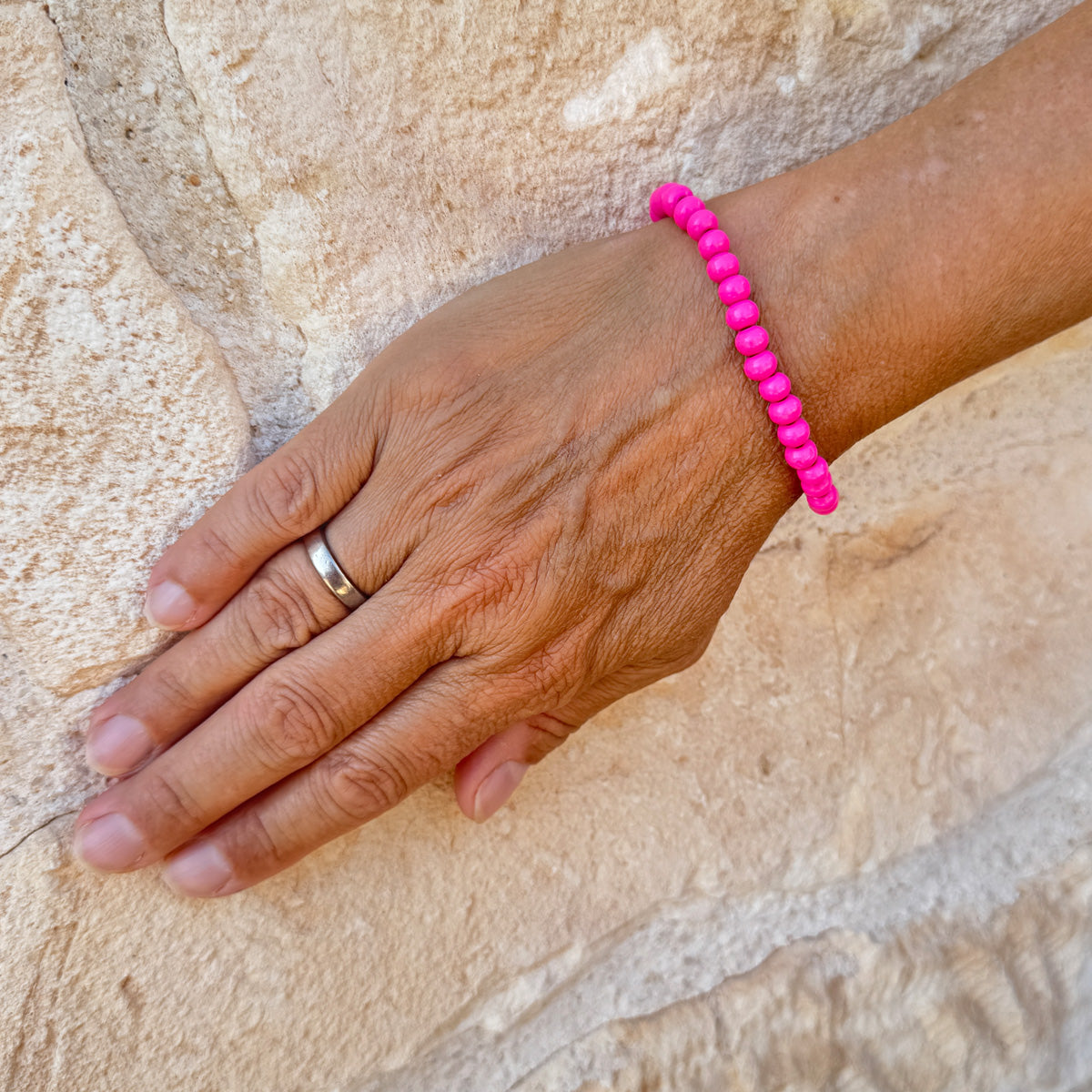 Le bracelet en perles de bois est composé de perles de bois de 6 mm soigneusement sélectionnées dans un délicat ton rose rouge à lèvres. La couleur donne au bracelet un look frais mais élégant qui accentue subtilement votre poignet.