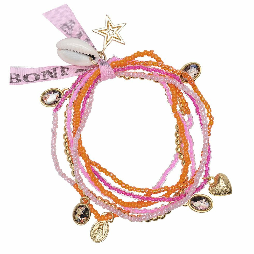 Ensemble de bracelets Hip Escapulario composé de Misanga et de petites perles en métal.Chacun des 7 élastiques possède un petit porte-bonheur.