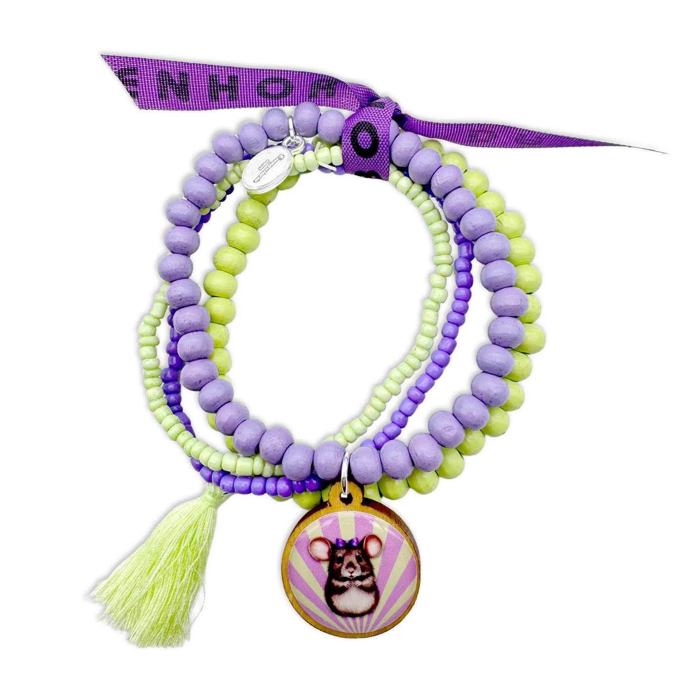 Armbandset in Flieder- und Grüntönen mit Mauspin