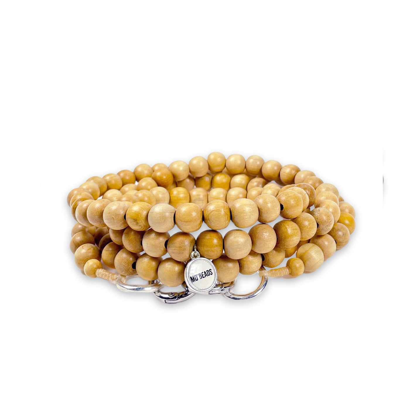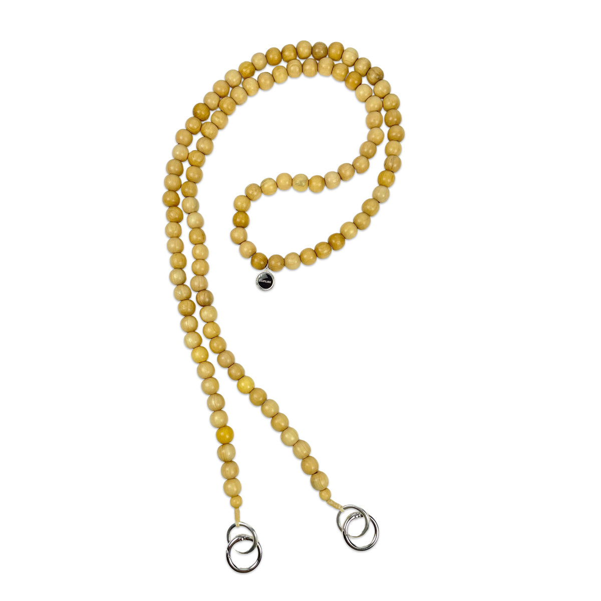 Die Escapulario Handykette aus natürlichen Holzperlen. Die Handykette hat eine Länge von 130 cm, ist auf einen hochwertigen gewachsten Baumwollfaden aufgefädelt und ist durch zwei Taschenringe mit Klickverschluss kinderleicht mit ihrem bestehenden Handykettencover zu wecheln. Angeboten wird nur die Handykette ohne Cover.
