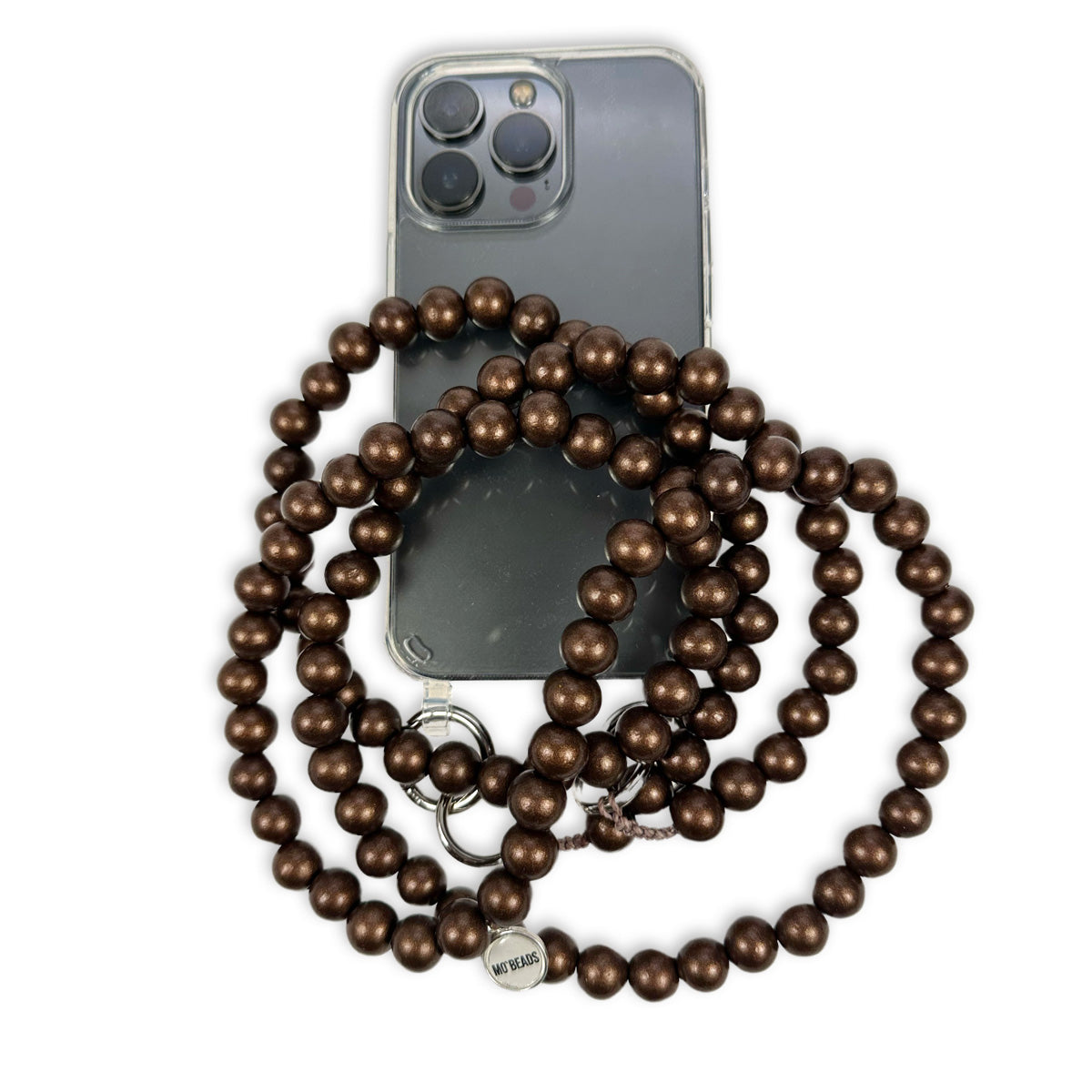 Diese tolle herbstliche Handykette besteht aus 112, in einem tiefen Bronze, gefärbten Holzperlen. Die Handykette hat eine Länge von 130 cm, ist handgeknüpft in Deutschland, auf einen hochwertigen gewachsten Baumwollfaden aufgefädelt und ist durch zwei Taschenringe mit Klickverschluss kinderleicht mit ihrem bestehenden Handykettencover zu wechseln. Angeboten wird nur die Handykette ohne Cover.