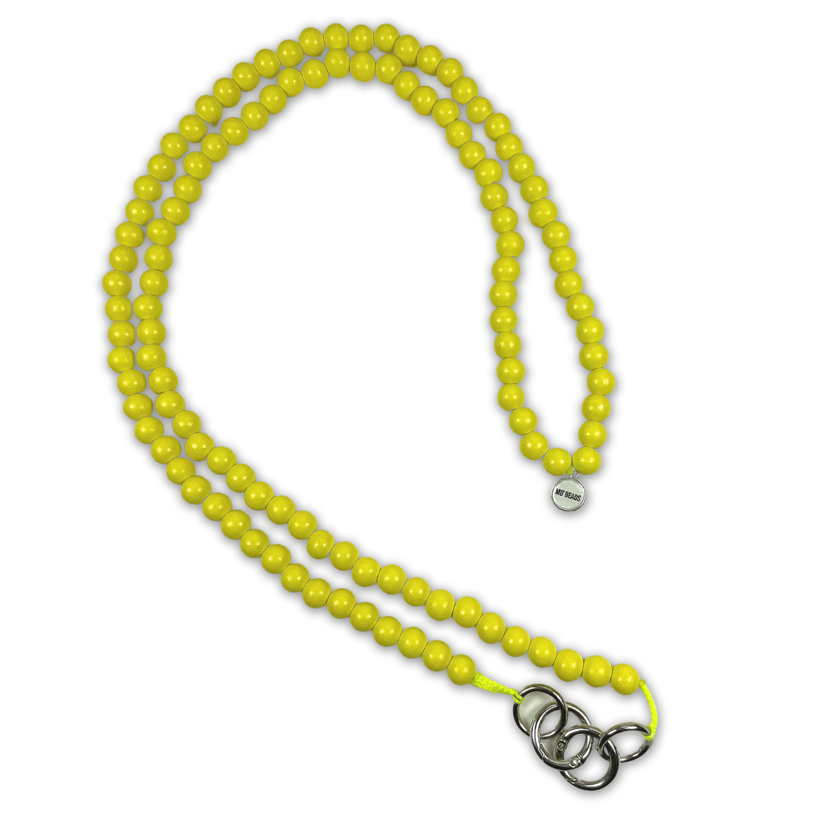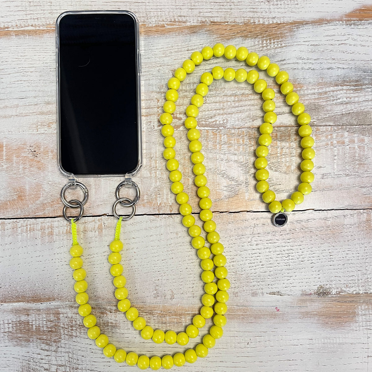 Die Handykette aus 116 gefärbten Holzperlen in sommerlichen Gelb.