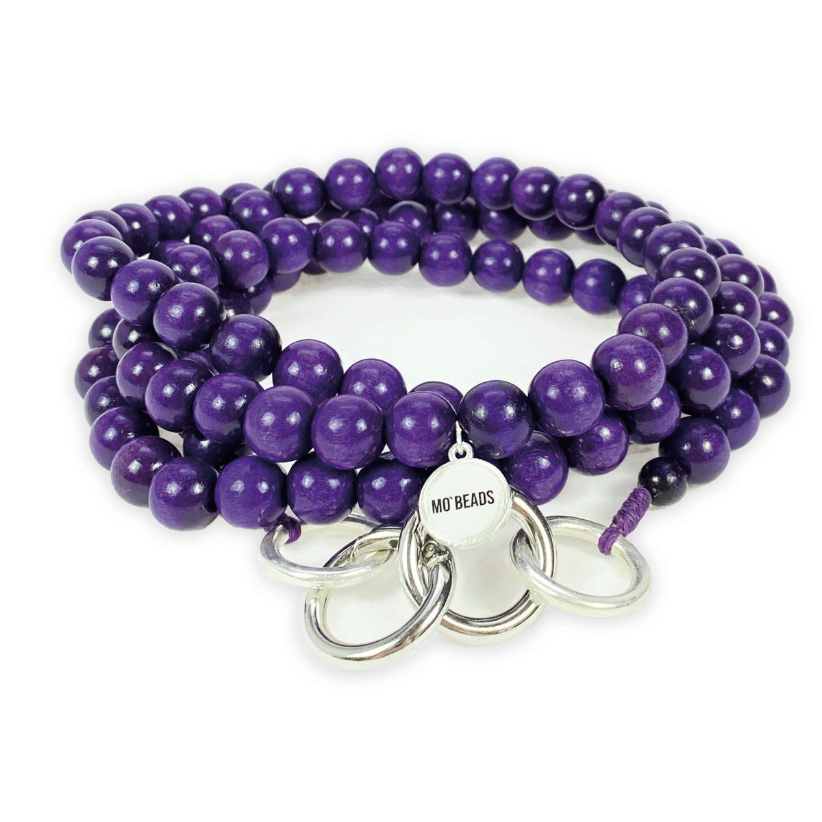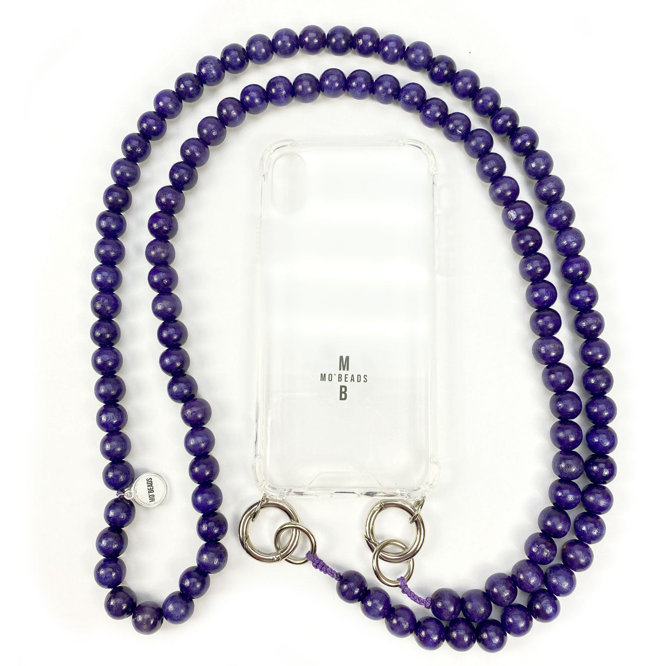 Die Handykette aus 108 gefärbten Holzperlen in modischem Lila.