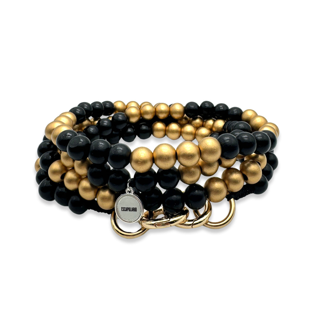Handykette aus Holzperlen im Gold-Schwarz Mix