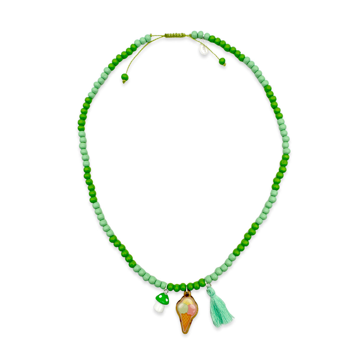 Holzkette 6mm in Apfel-Mint mit Pin, Quaste & Pilz