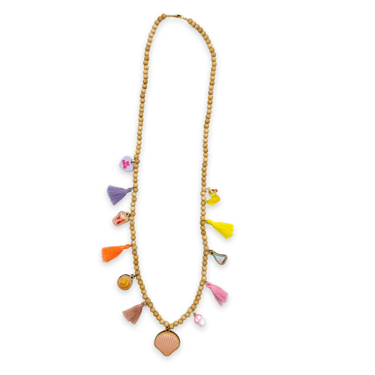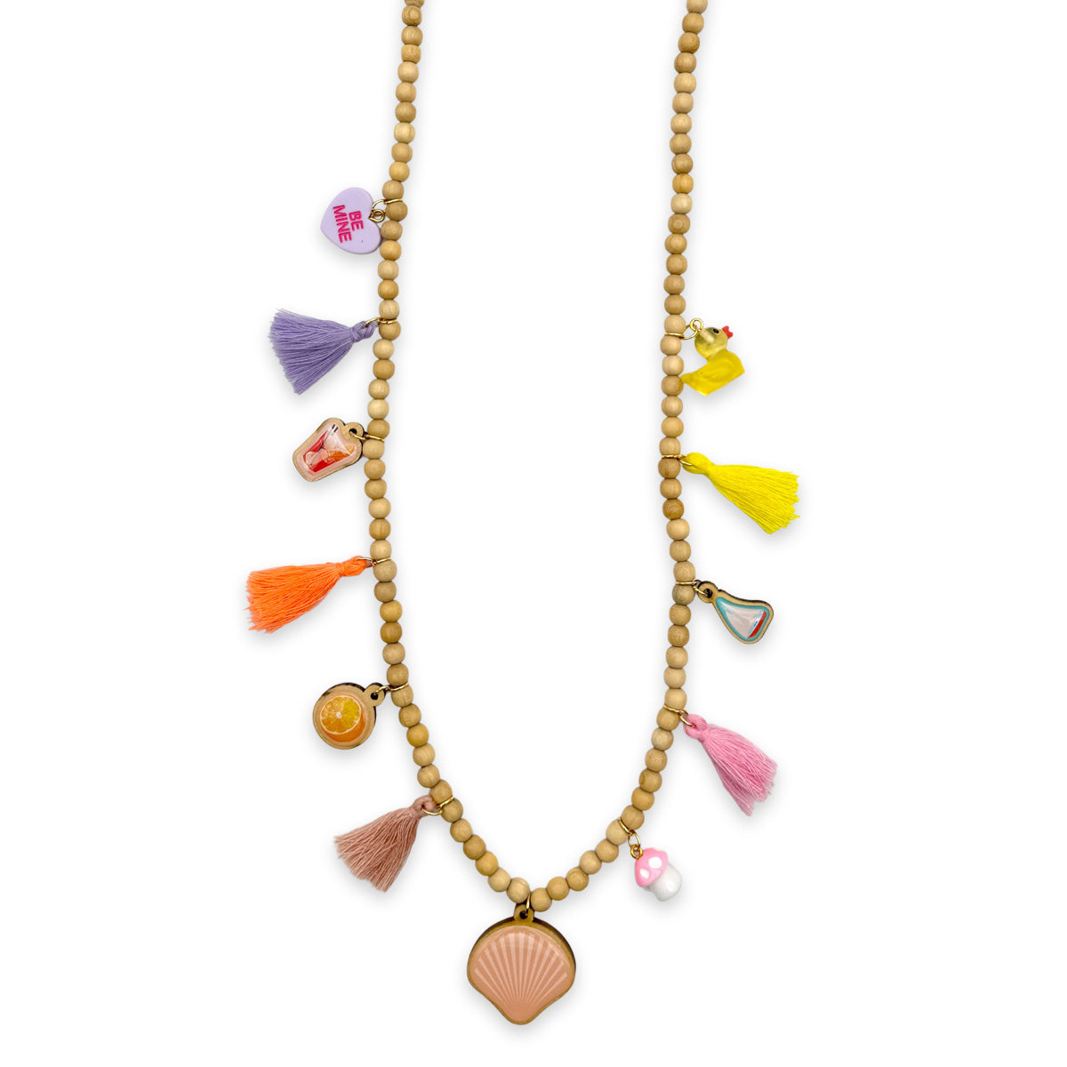 Verspielte Holzperlenkette mit Charms – Beige Natur