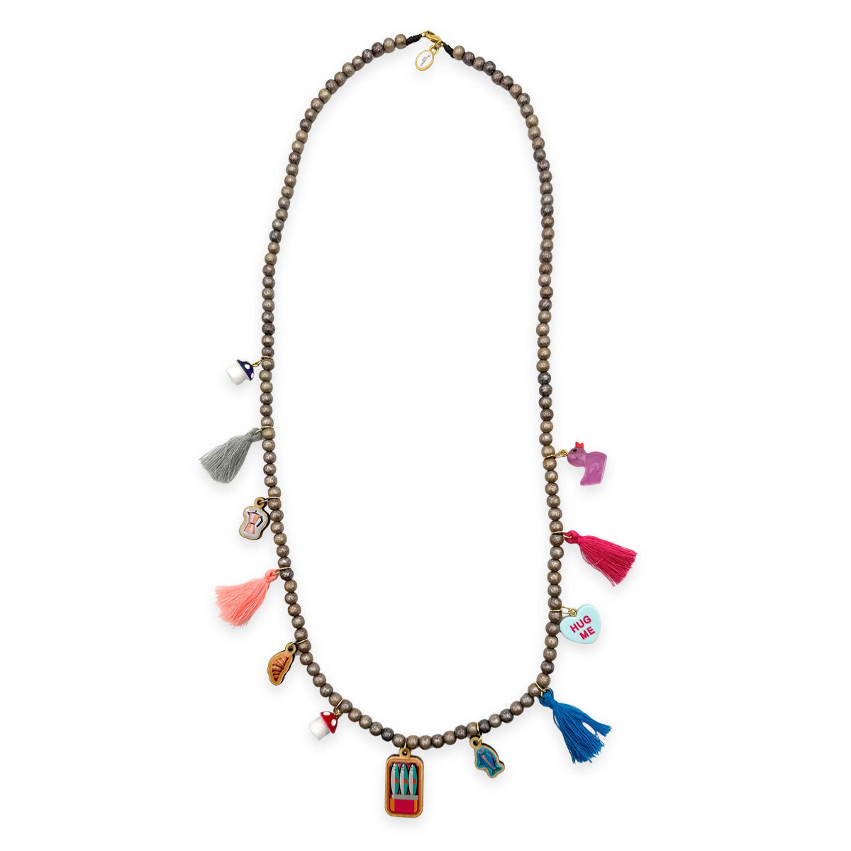 Verspielte Holzperlenkette mit Charms – Braun Metallic