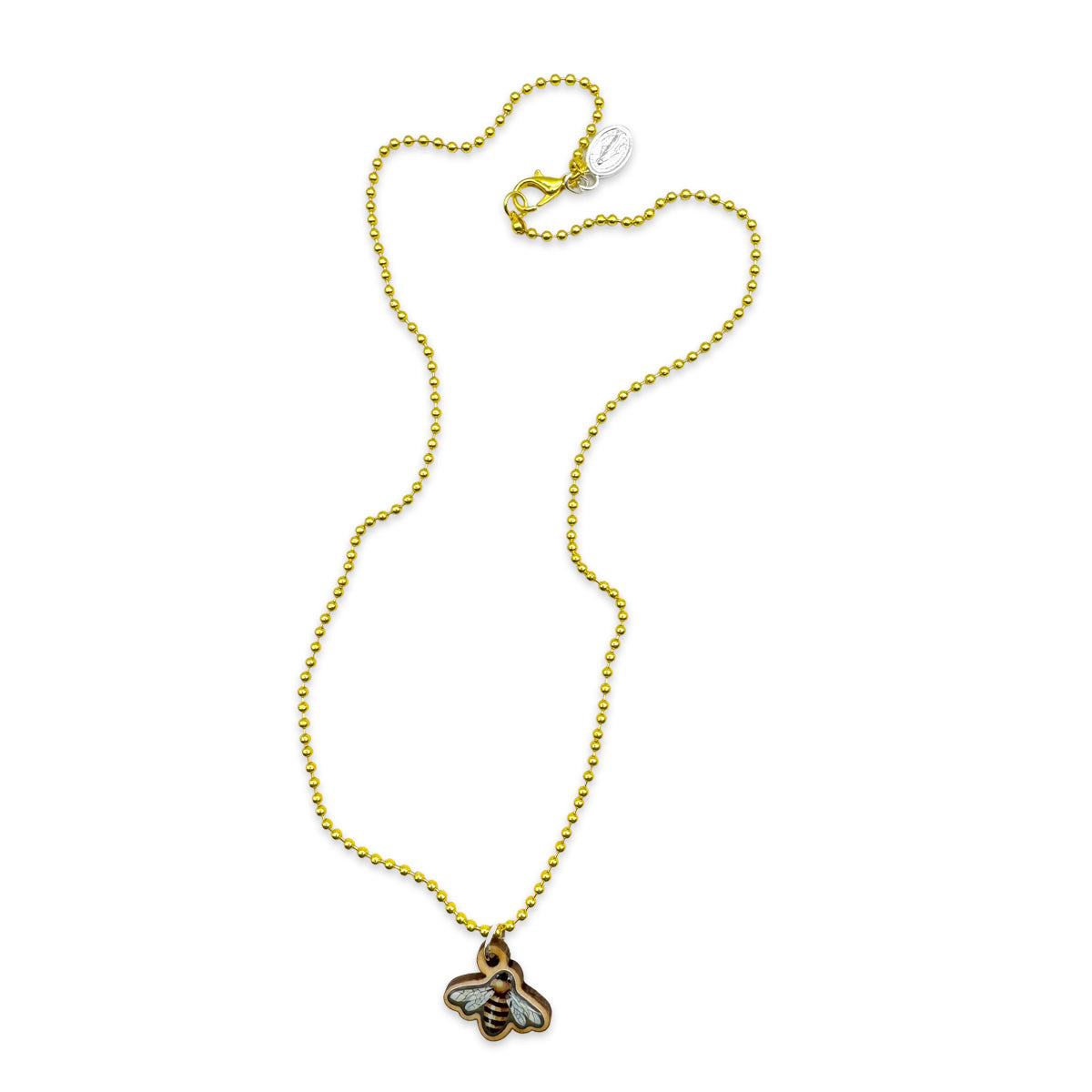 Kugelkette Metallic Gelb mit Bienenänger aus Holz